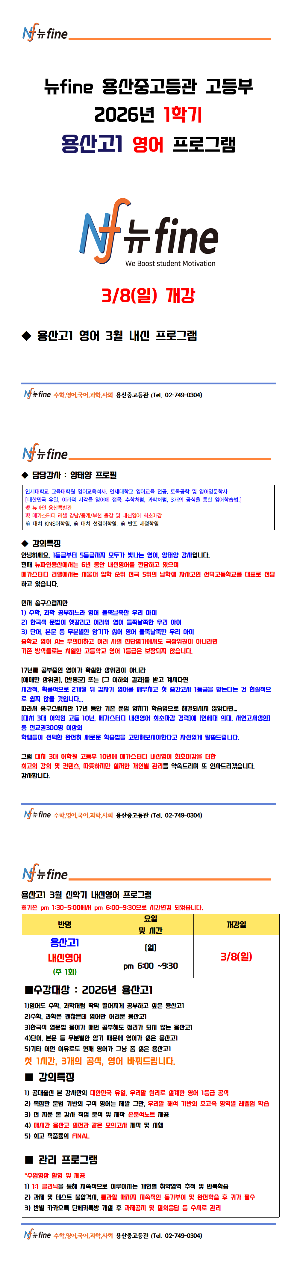 뉴파인학원(이하 ‘학원’)은 개인정보 보호법에 명기된 관련 법률 상의 개인정보처리자가 준수하여야 할 개인정보보호 규정을 준수하며, 관련 법령에 의거하여 이용자의 권익 보호에 최선을 다하고 있습니다. 아래 내용을 충분히 숙지하신 후 본인이 직접 동의란에 서명해 주시기 바랍니다.