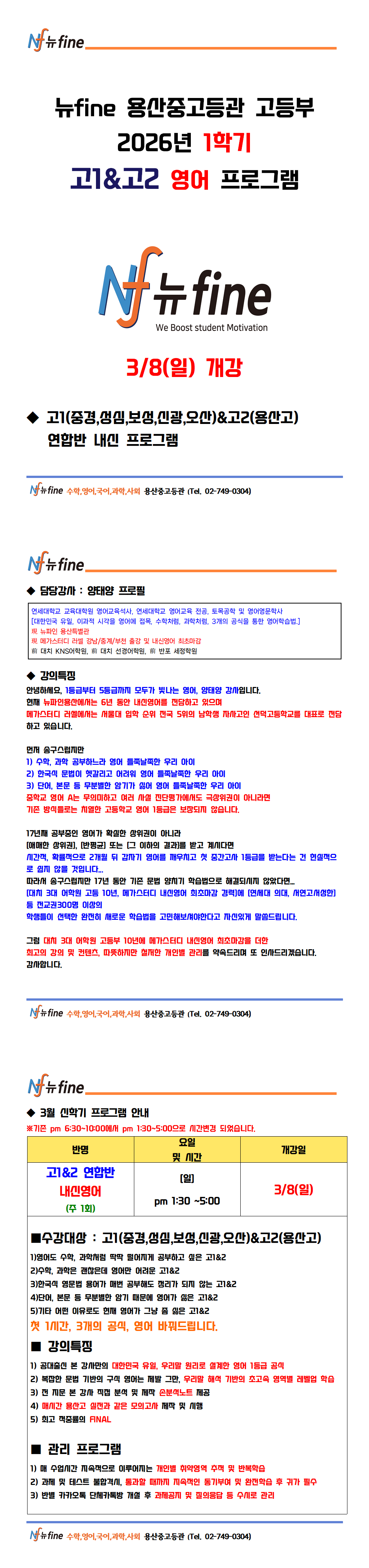 뉴파인학원(이하 ‘학원’)은 개인정보 보호법에 명기된 관련 법률 상의 개인정보처리자가 준수하여야 할 개인정보보호 규정을 준수하며, 관련 법령에 의거하여 이용자의 권익 보호에 최선을 다하고 있습니다. 아래 내용을 충분히 숙지하신 후 본인이 직접 동의란에 서명해 주시기 바랍니다.