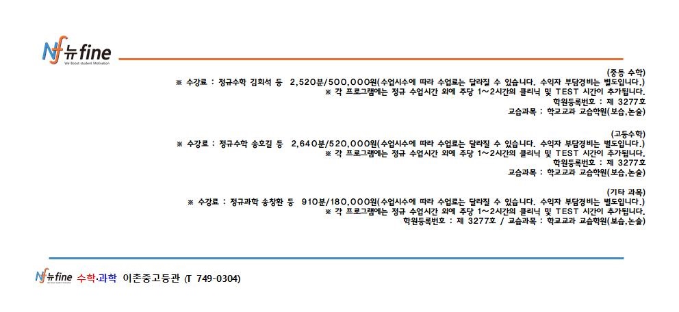 뉴파인학원(이하 ‘학원’)은 개인정보 보호법에 명기된 관련 법률 상의 개인정보처리자가 준수하여야 할 개인정보보호 규정을 준수하며, 관련 법령에 의거하여 이용자의 권익 보호에 최선을 다하고 있습니다. 아래 내용을 충분히 숙지하신 후 본인이 직접 동의란에 서명해 주시기 바랍니다.