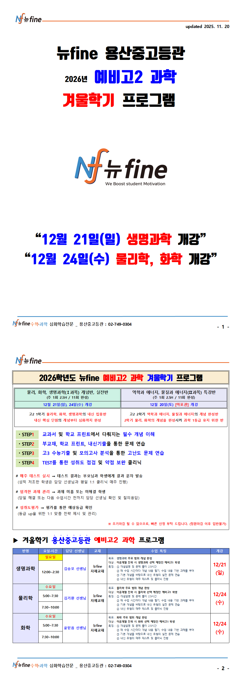 12월21일(일)-생명과학, 24(수) 물리,화학 개강