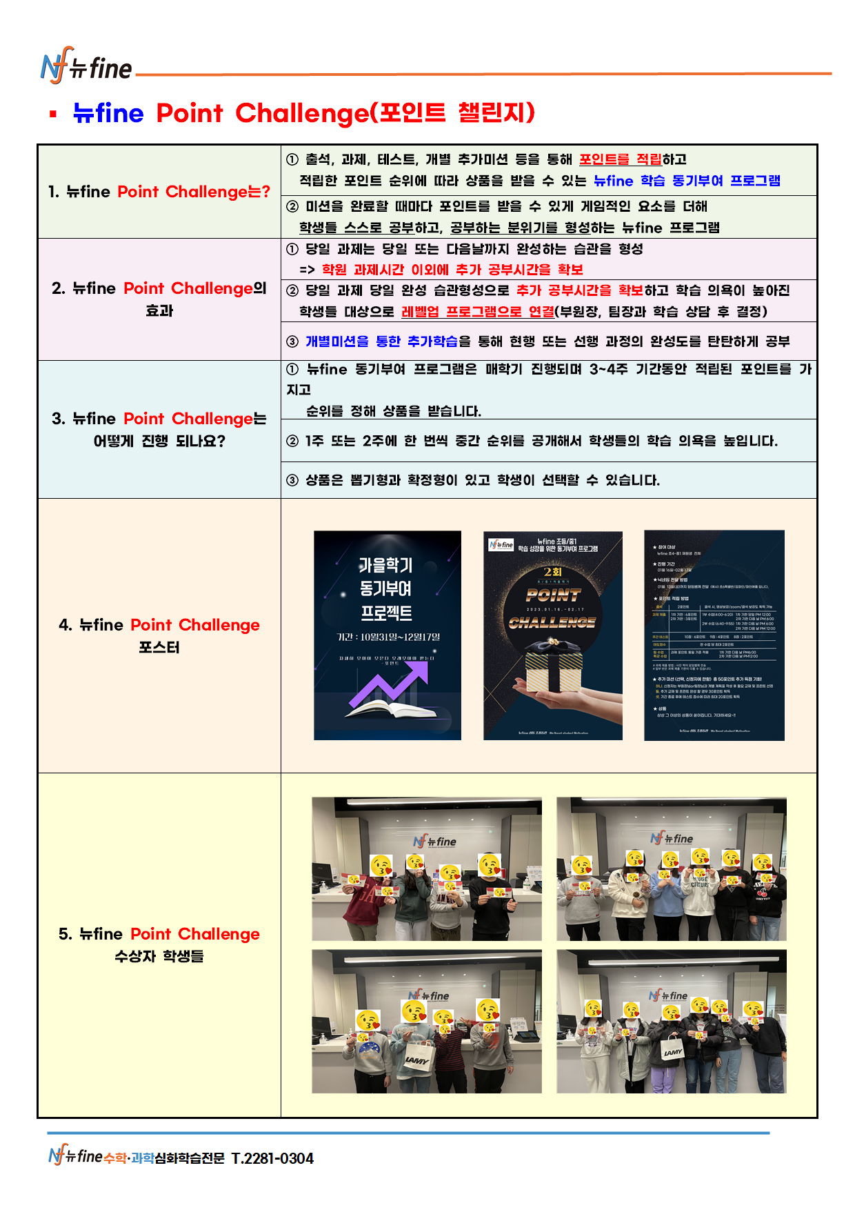 뉴파인학원(이하 ‘학원’)은 개인정보 보호법에 명기된 관련 법률 상의 개인정보처리자가 준수하여야 할 개인정보보호 규정을 준수하며, 관련 법령에 의거하여 이용자의 권익 보호에 최선을 다하고 있습니다. 아래 내용을 충분히 숙지하신 후 본인이 직접 동의란에 서명해 주시기 바랍니다.