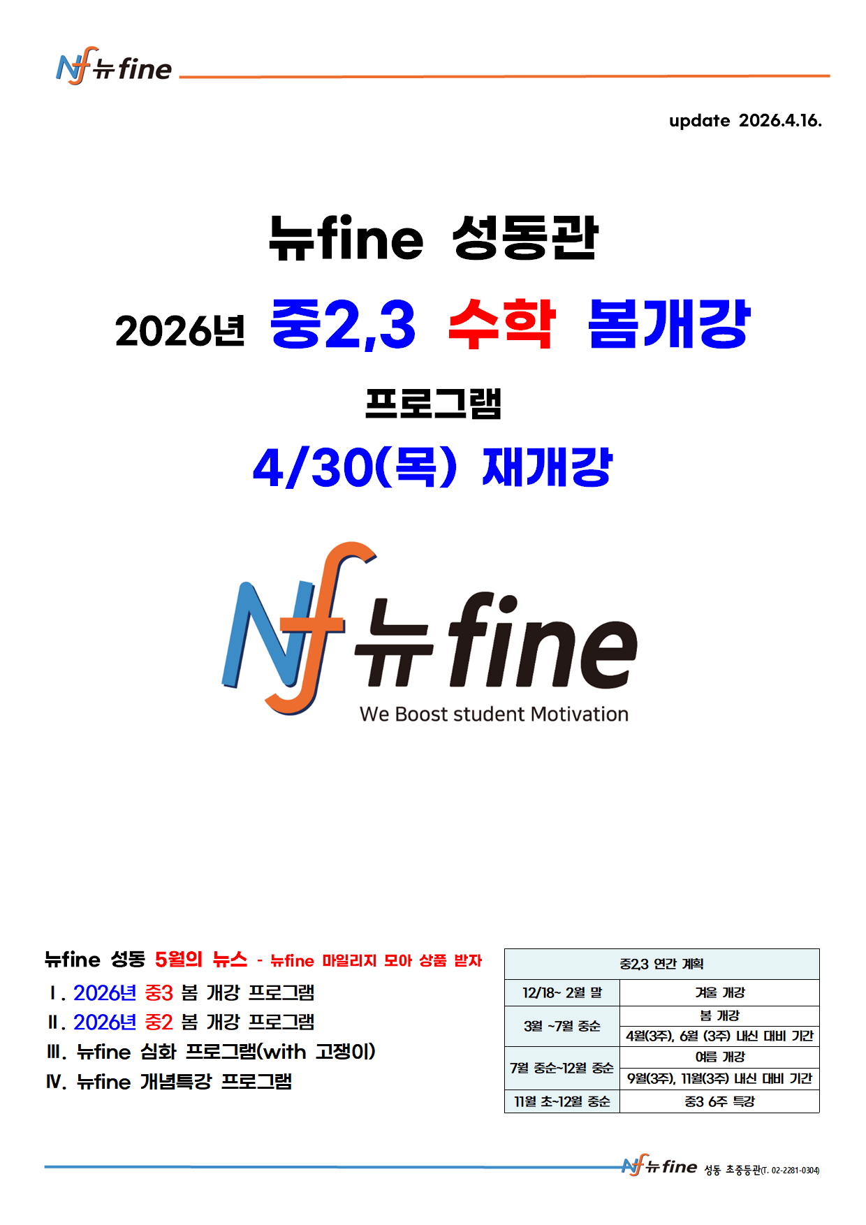 뉴파인학원(이하 ‘학원’)은 개인정보 보호법에 명기된 관련 법률 상의 개인정보처리자가 준수하여야 할 개인정보보호 규정을 준수하며, 관련 법령에 의거하여 이용자의 권익 보호에 최선을 다하고 있습니다. 아래 내용을 충분히 숙지하신 후 본인이 직접 동의란에 서명해 주시기 바랍니다.