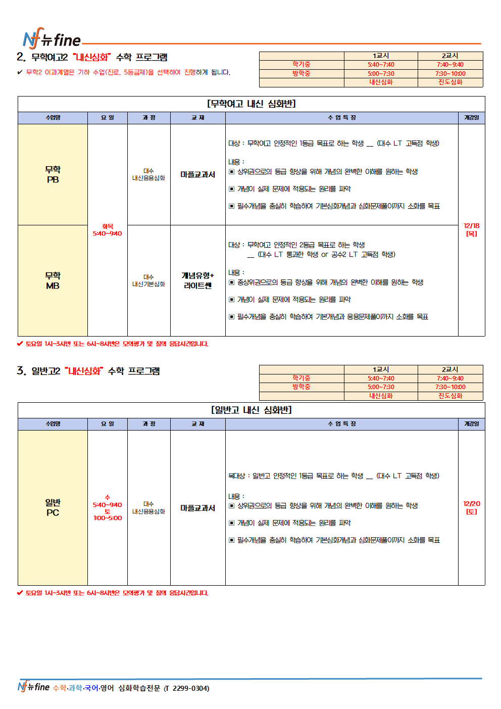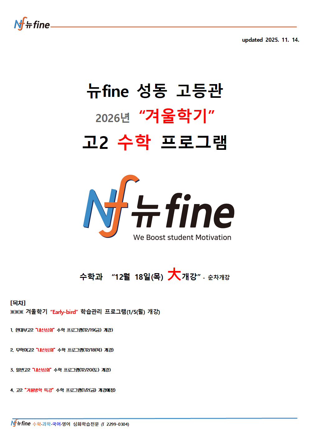2025년 12월 성동고등관 겨울학기 고2 수학 프로그램( 현 고1, 12/18(목)개강)