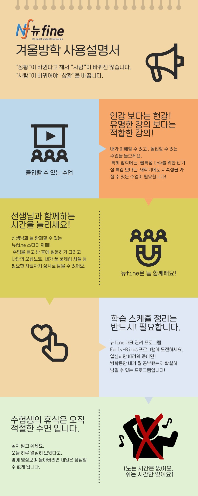 뉴파인학원(이하 ‘학원’)은 개인정보 보호법에 명기된 관련 법률 상의 개인정보처리자가 준수하여야 할 개인정보보호 규정을 준수하며, 관련 법령에 의거하여 이용자의 권익 보호에 최선을 다하고 있습니다. 아래 내용을 충분히 숙지하신 후 본인이 직접 동의란에 서명해 주시기 바랍니다.