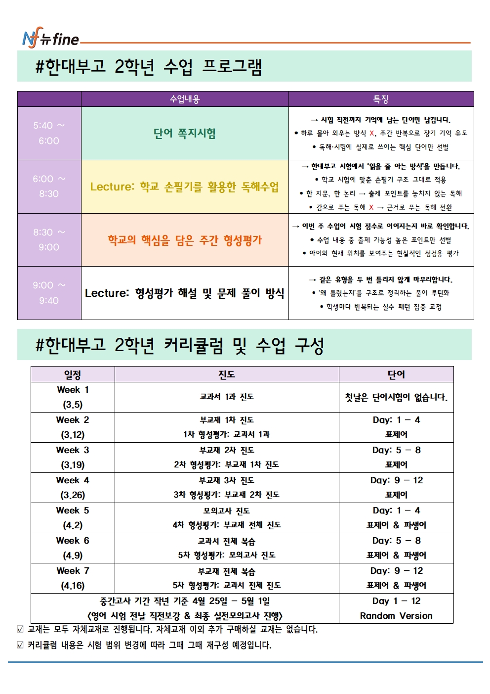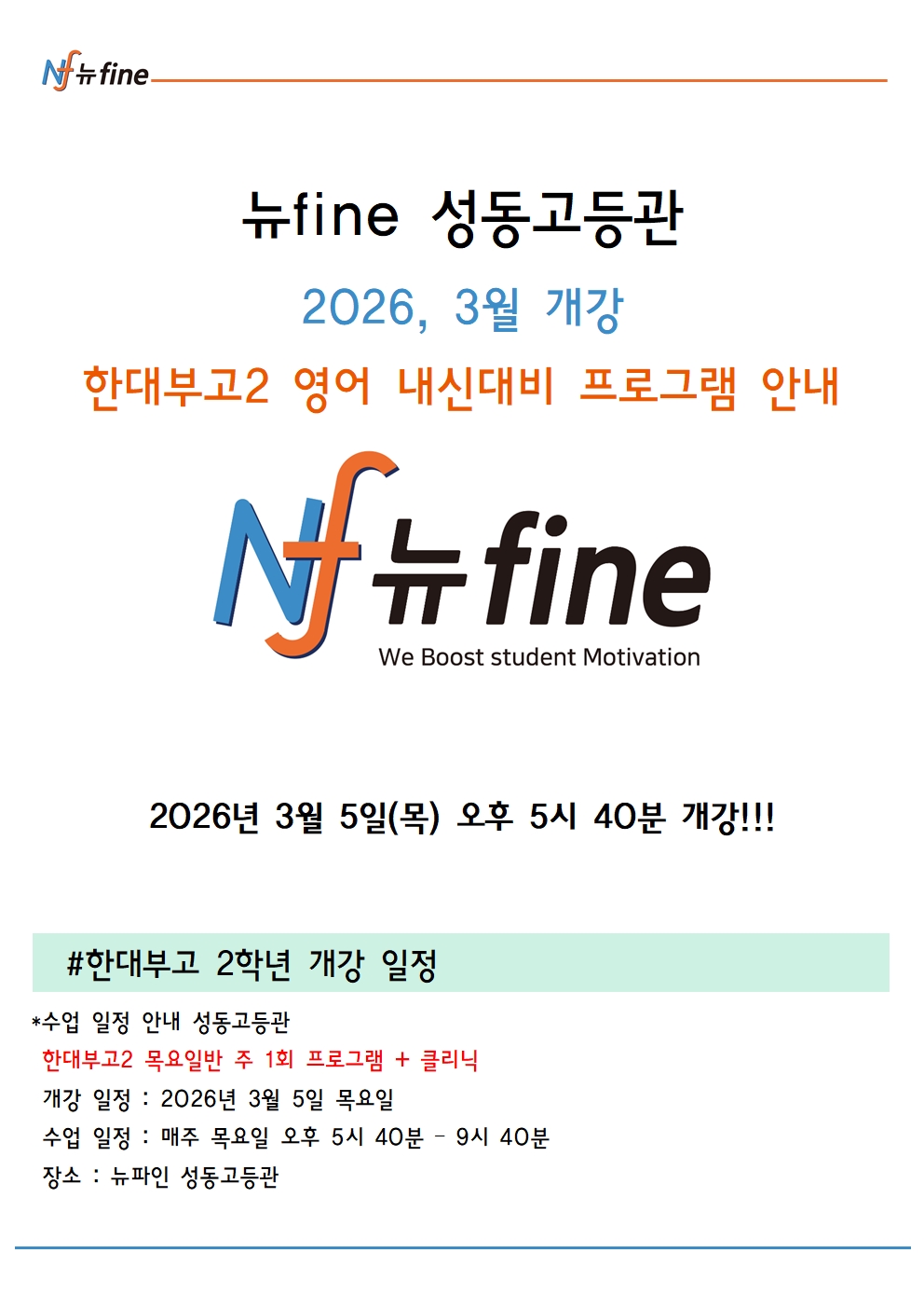 2026년 3월 성동고등관 봄학기 고2 영어 프로그램