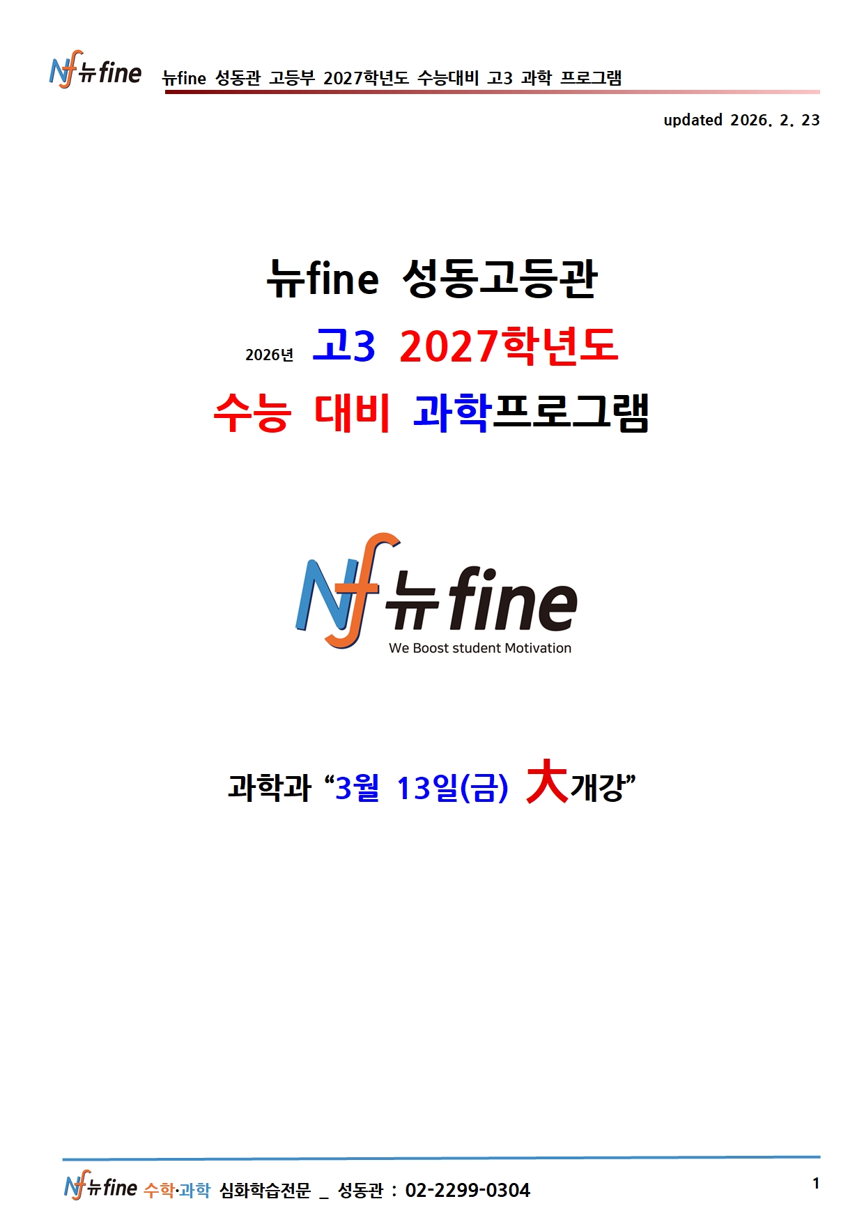 2026년 3월 성동고등관 봄학기 고3 과학 프로그램