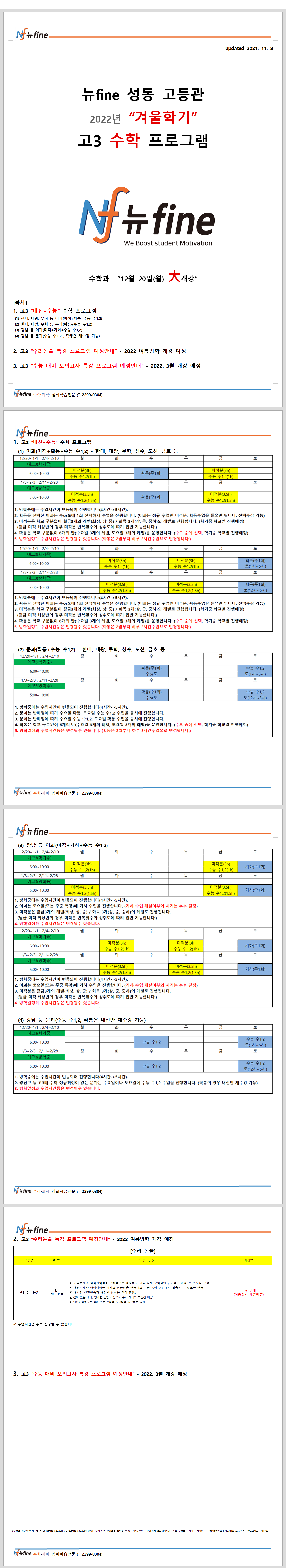 2021년 12월 겨울학기 성동고등관 고3(현고2) 수학 프로그램 (수리논술 포함)