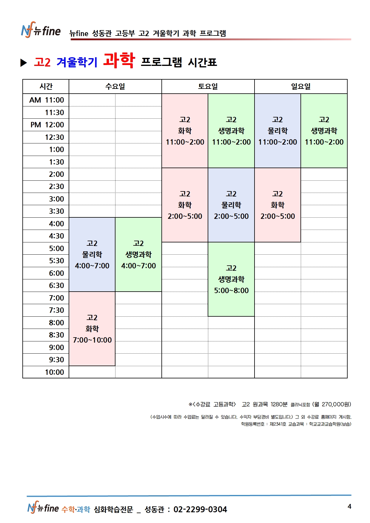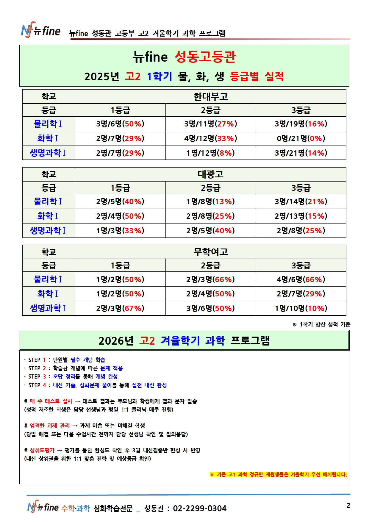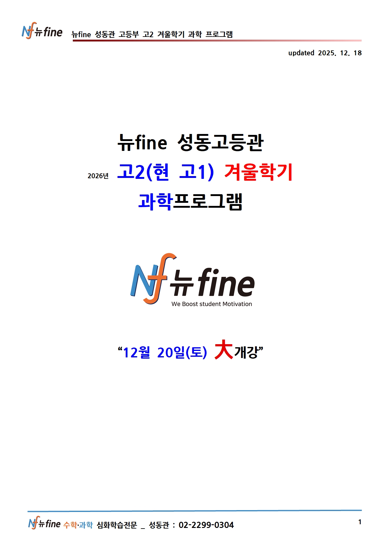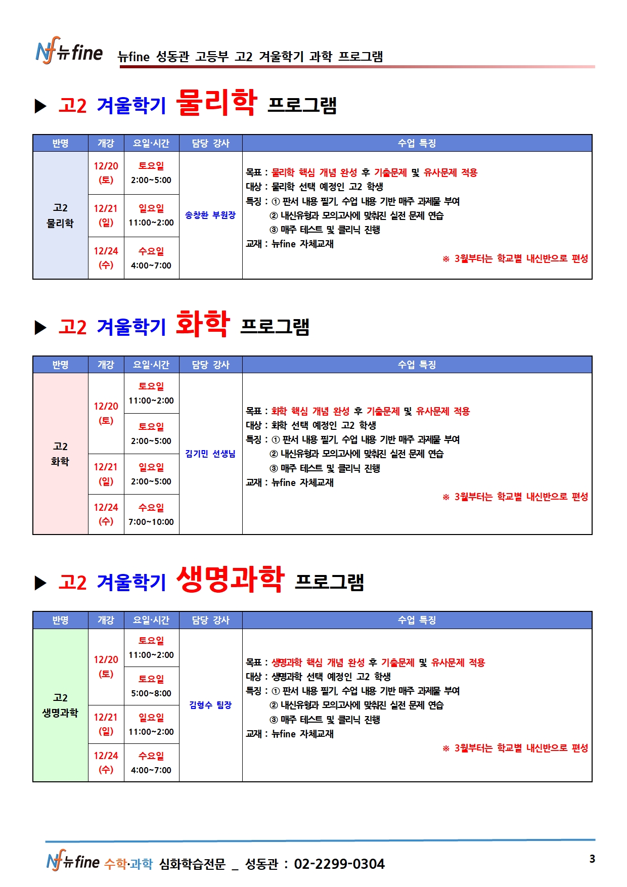 2025년 12월 성동고등관 겨울학기 고2 과학 프로그램( 현 고1, 12/20(토)개강 )
