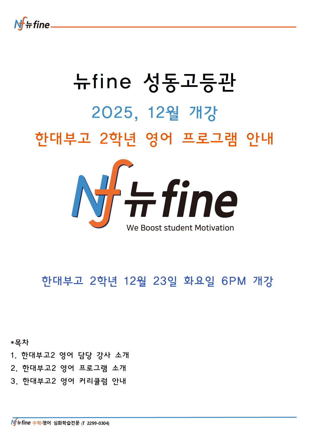 2025년 12월 성동고등관 겨울학기 고2 영어 프로그램( 현 고1, 12/23(화)개강 )