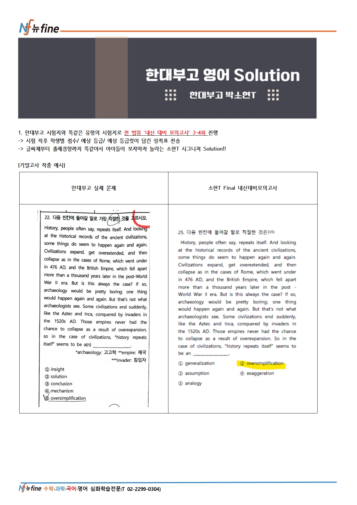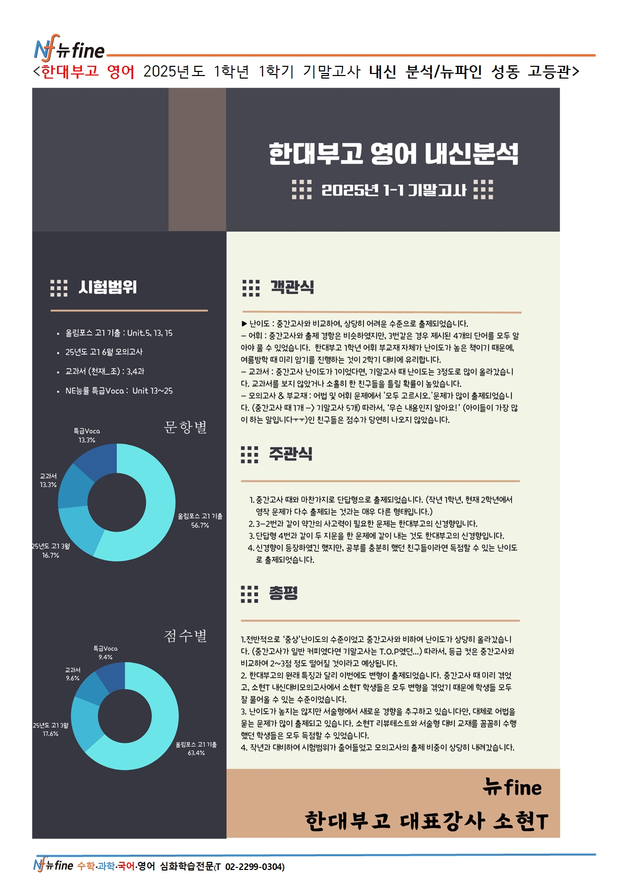 2025 한대부고1 1학기 기말고사 영어 기출분석
