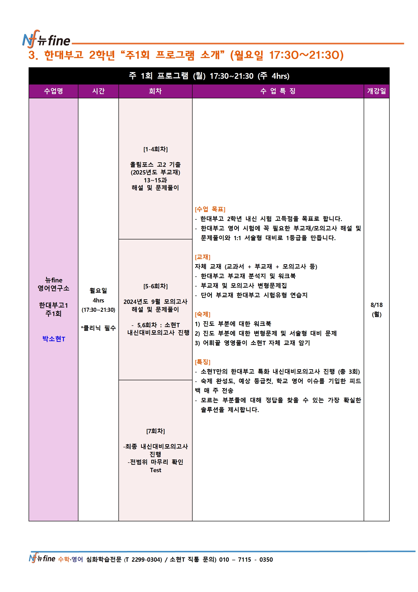 2025년 8월 성동고등관 2학기 고2 영어 프로그램