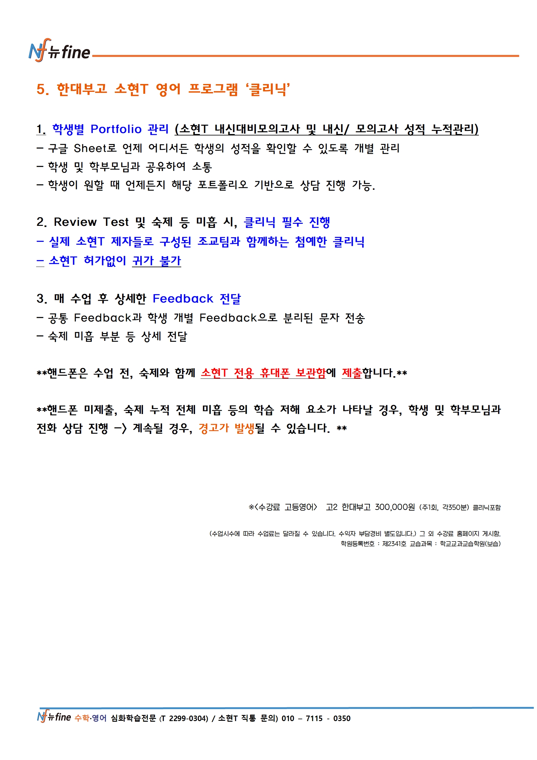 뉴파인학원(이하 ‘학원’)은 개인정보 보호법에 명기된 관련 법률 상의 개인정보처리자가 준수하여야 할 개인정보보호 규정을 준수하며, 관련 법령에 의거하여 이용자의 권익 보호에 최선을 다하고 있습니다. 아래 내용을 충분히 숙지하신 후 본인이 직접 동의란에 서명해 주시기 바랍니다.
