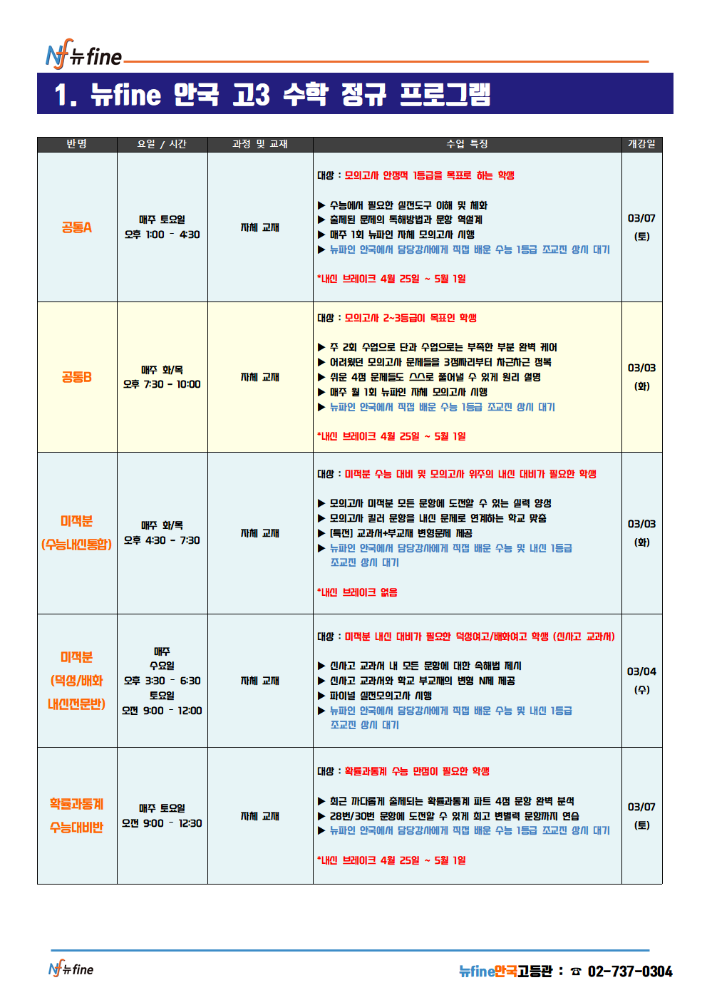 봄학기 고3 수학 프로그램