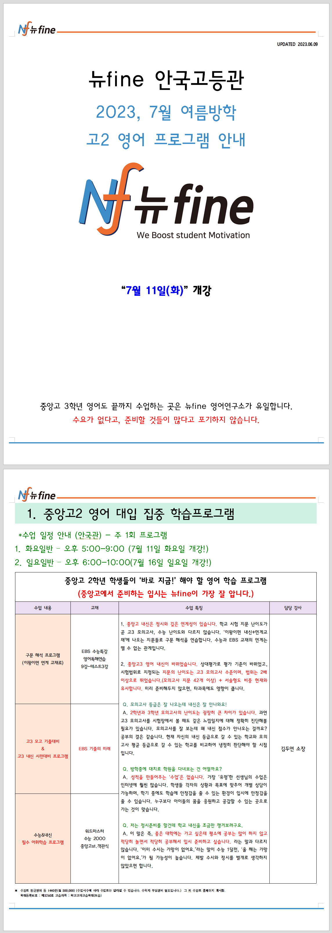 중앙고2 영어 프로그램