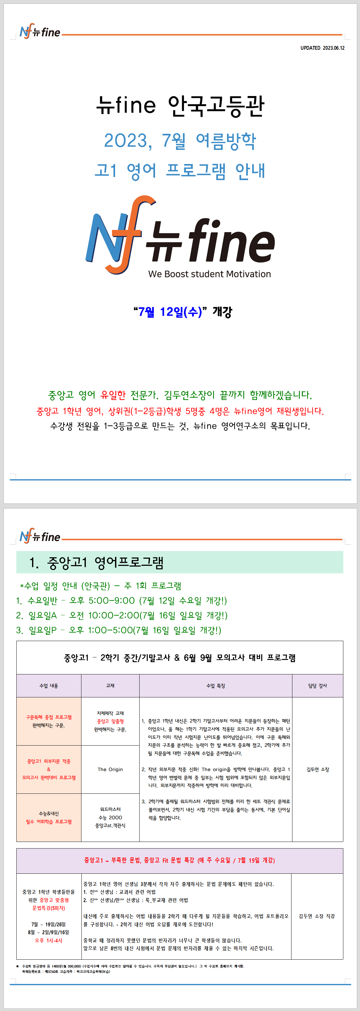 뉴파인안국중고등학원