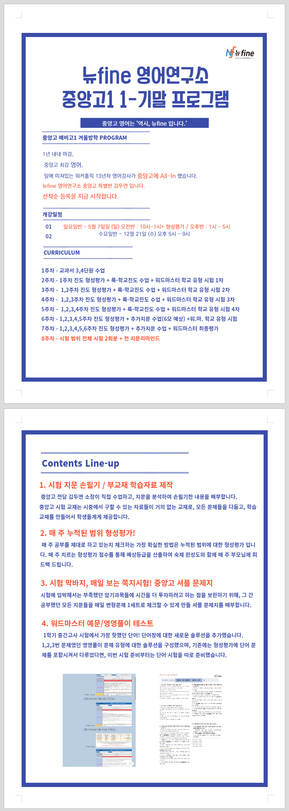 뉴파인학원(이하 ‘학원’)은 개인정보 보호법에 명기된 관련 법률 상의 개인정보처리자가 준수하여야 할 개인정보보호 규정을 준수하며, 관련 법령에 의거하여 이용자의 권익 보호에 최선을 다하고 있습니다. 아래 내용을 충분히 숙지하신 후 본인이 직접 동의란에 서명해 주시기 바랍니다.