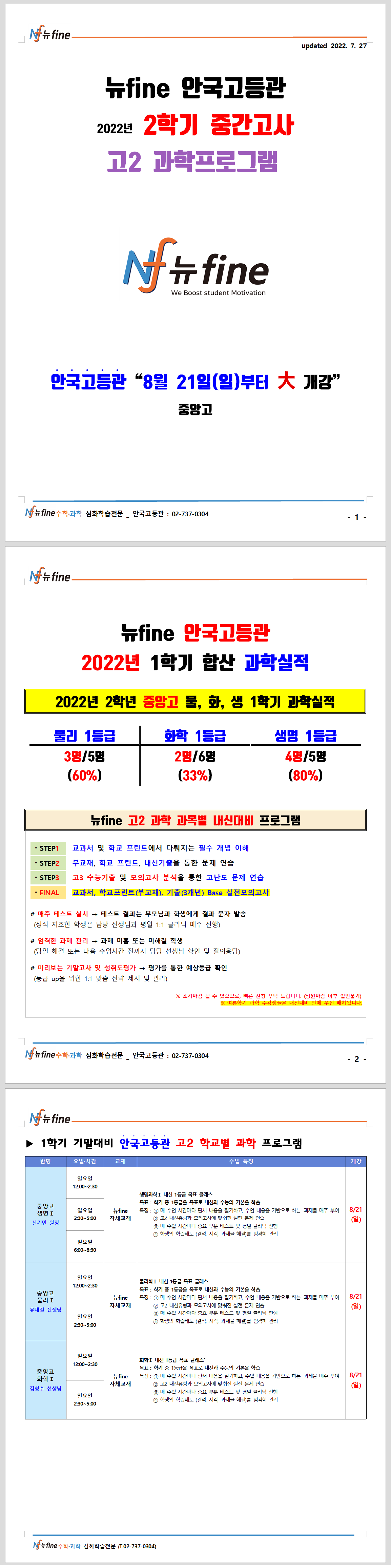 중앙고2 과학 프로그램 (8/21 개강)