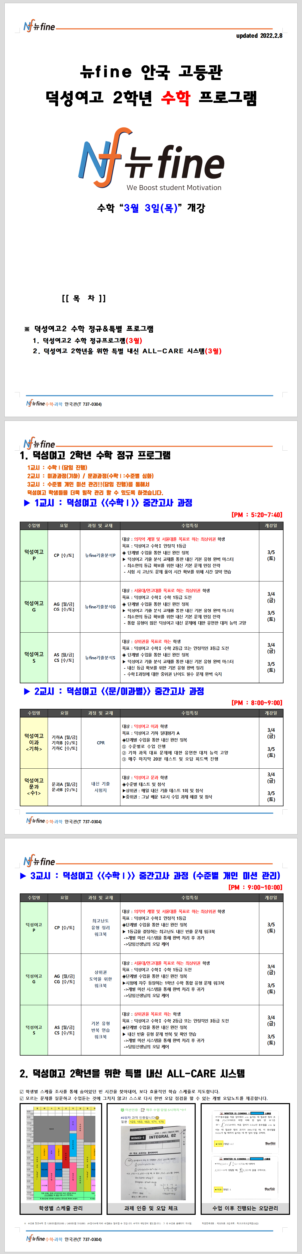2022년 3월 봄학기 안국중고등관 [덕성여고] 고2 수학 프로그램