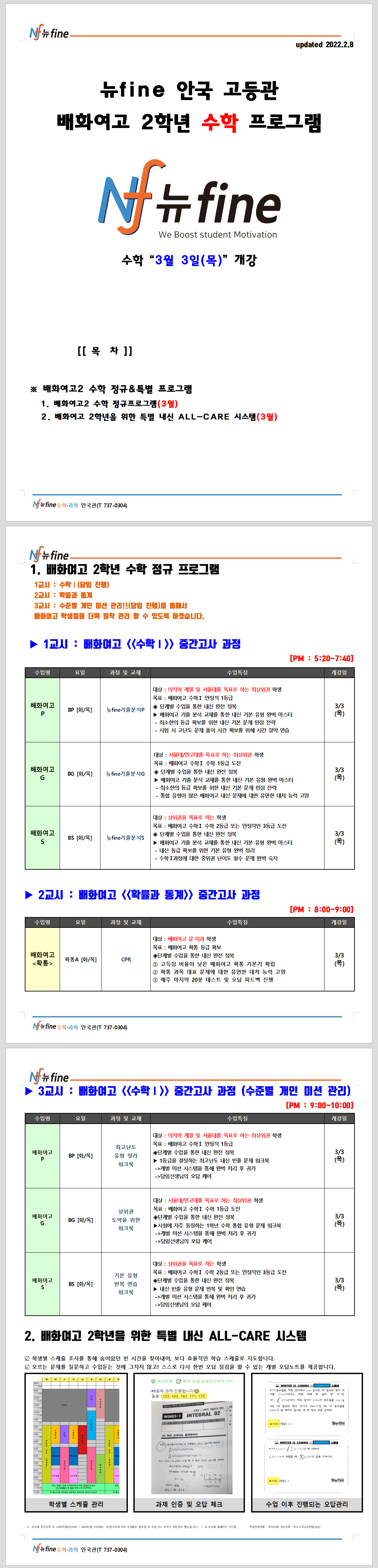 2022년 3월 봄학기 안국중고등관 [배화여고] 고2 수학 프로그램