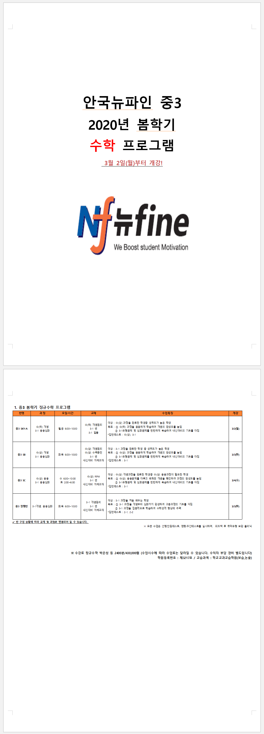 2020년 03월 안국중고등관 수학프로그램(중3)