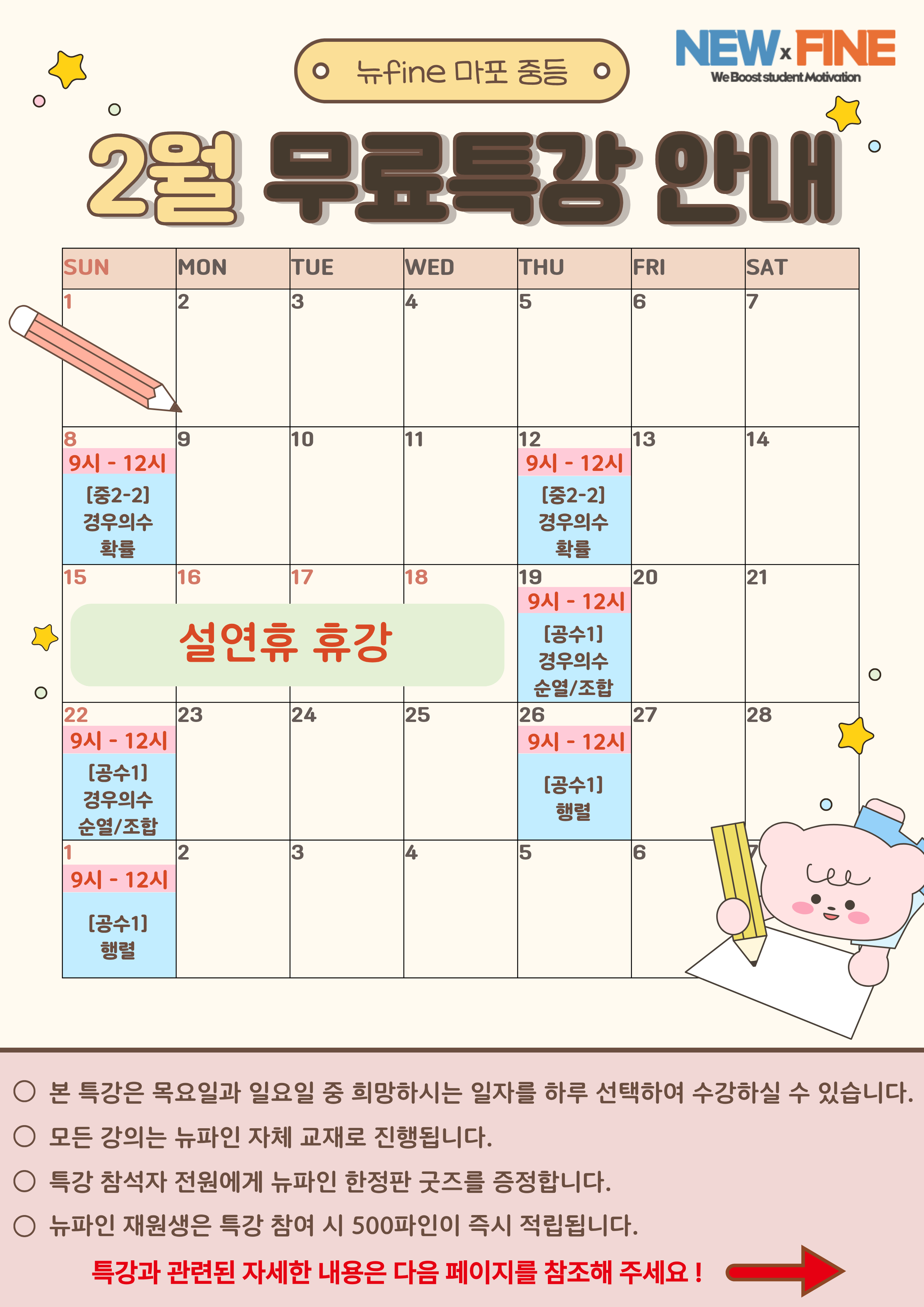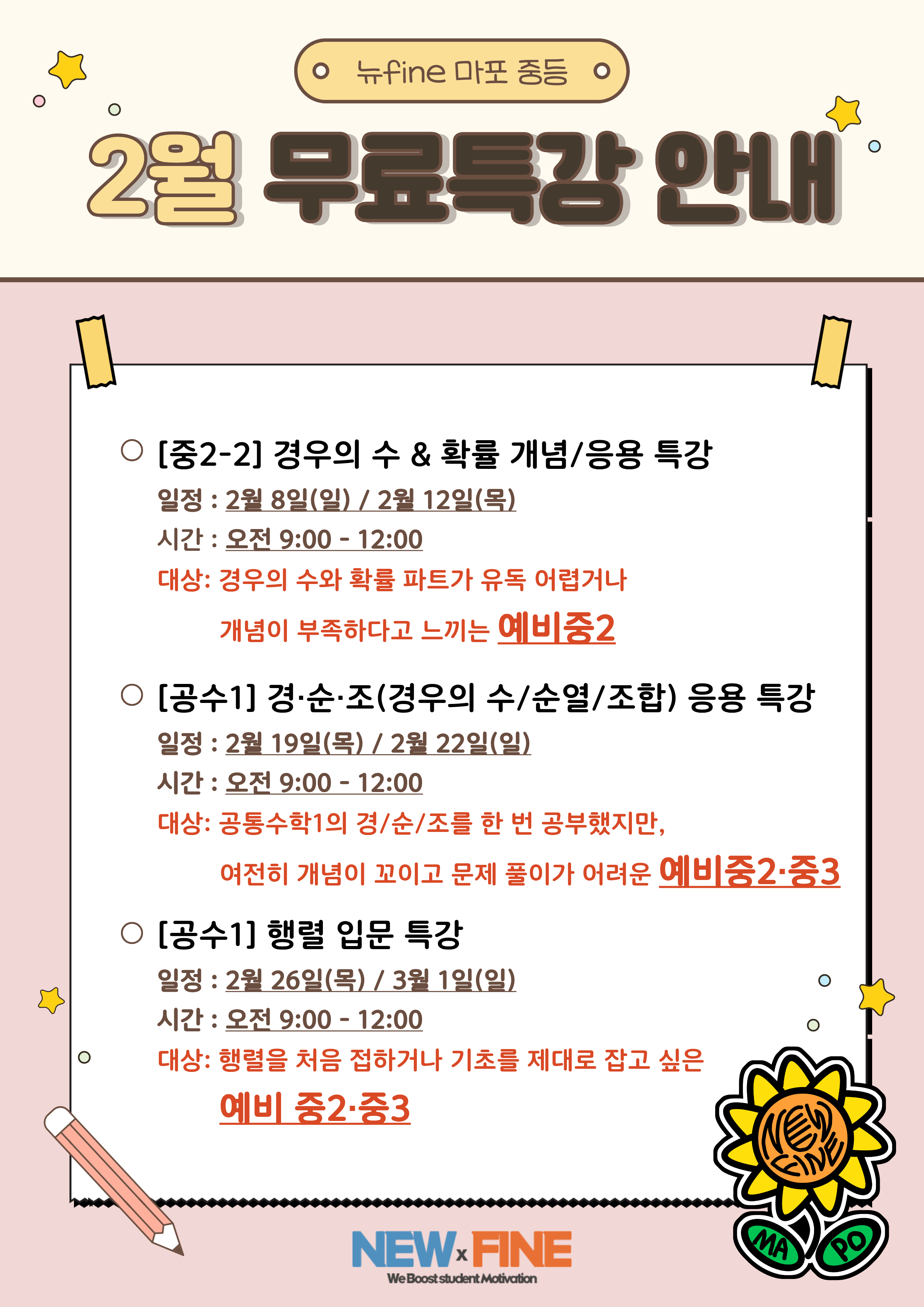 2026년 2월 <예비중2,중3> 수학 무료 특강