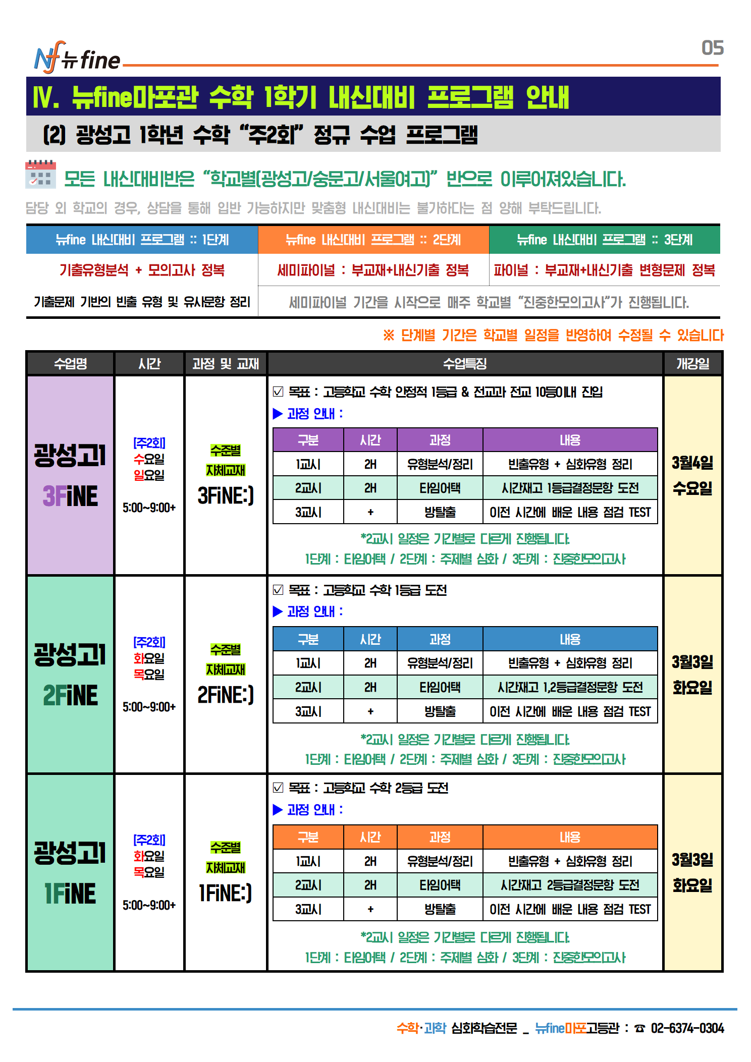※수강료 고등수학1[2,640분/월560,000원], 고등수학6[2,880분/620,000원]