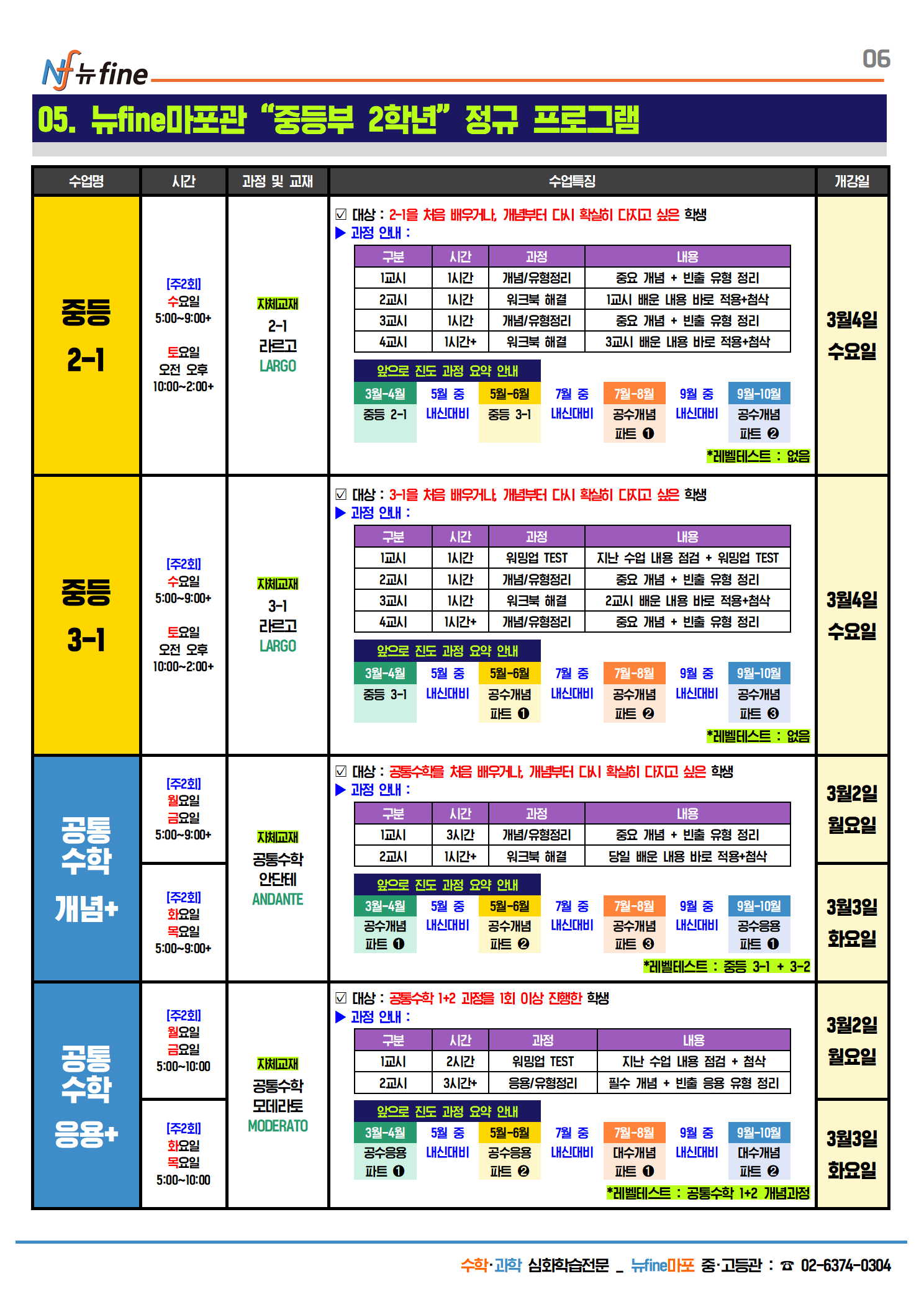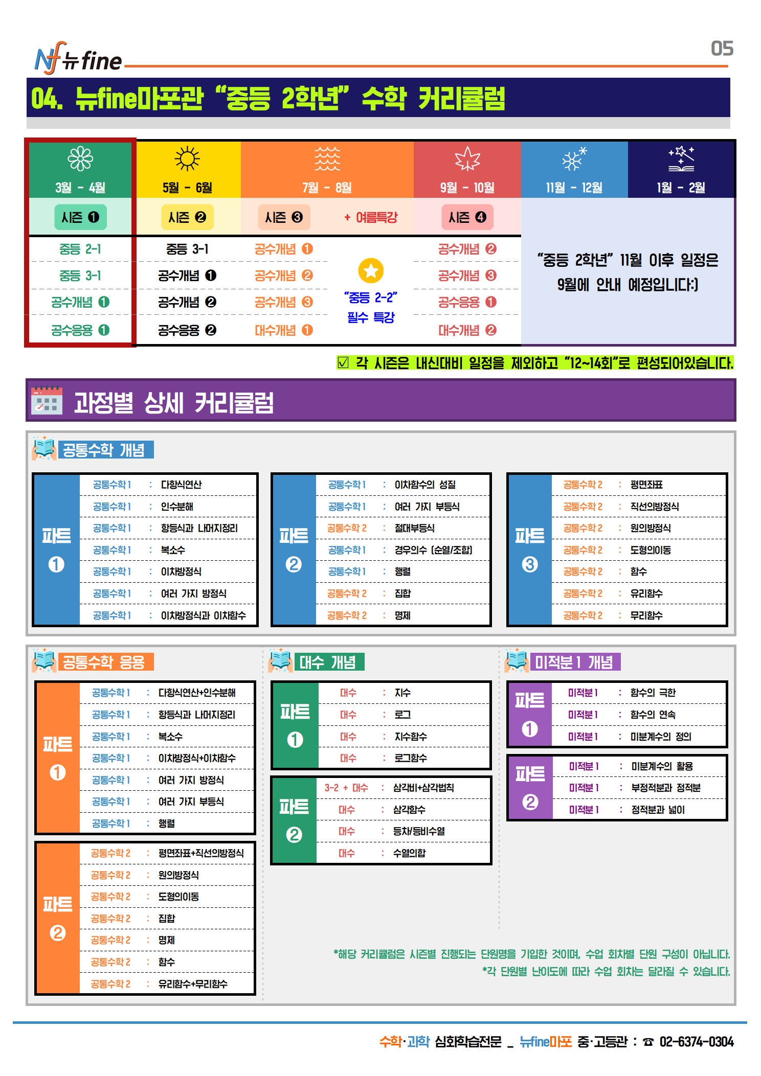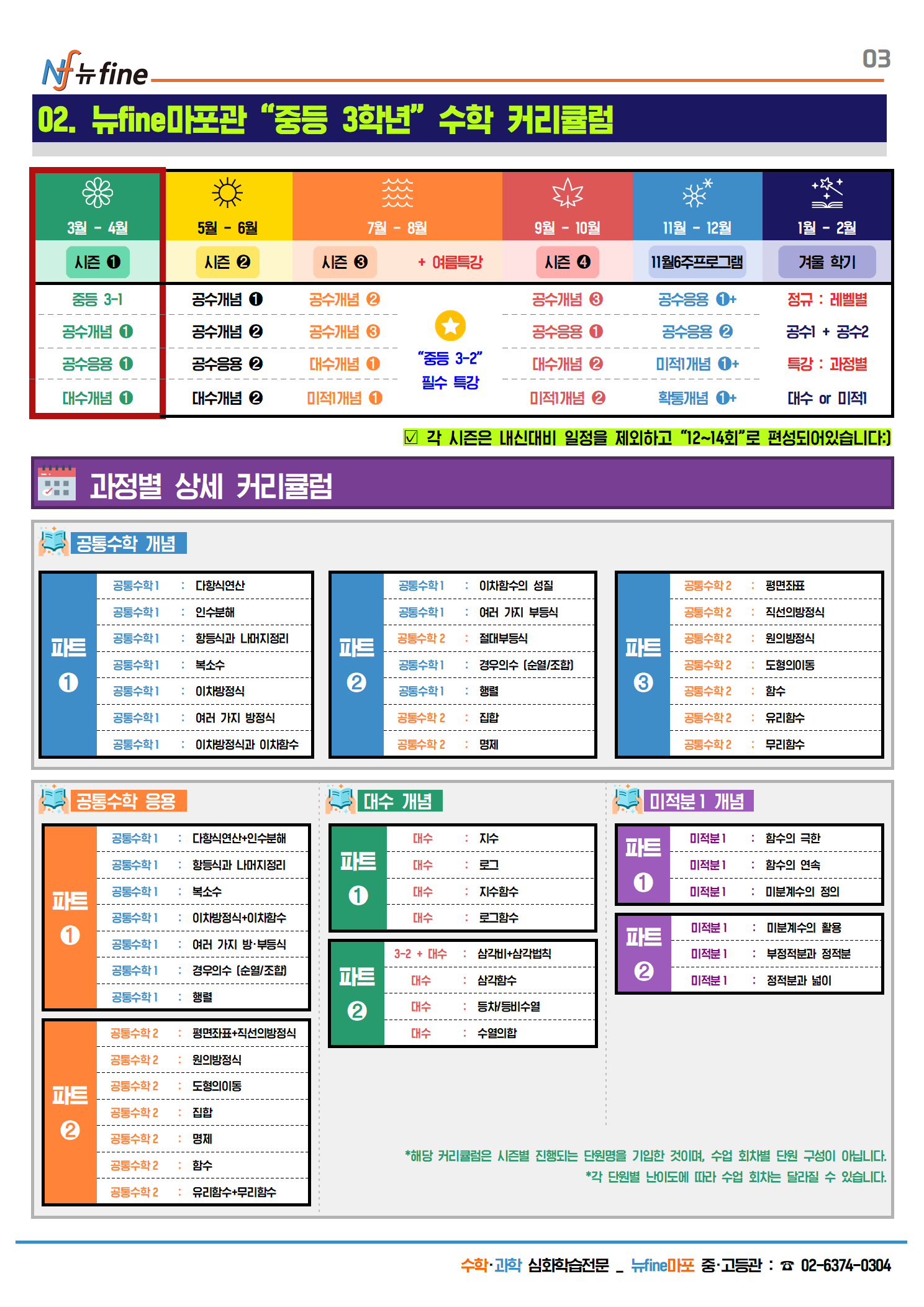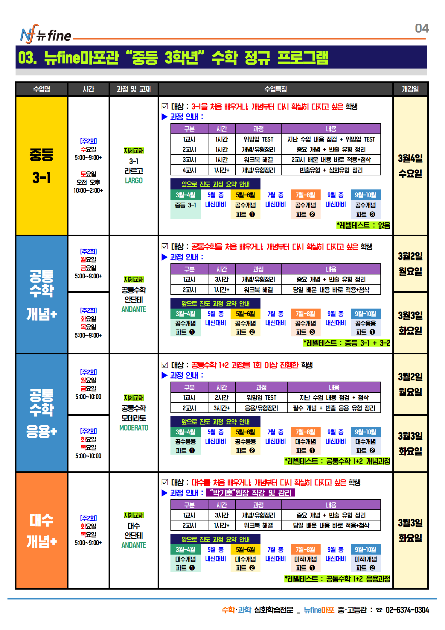 ※수강료 중등수학1[2,880분/544,000원], 중등수학3[1,920분/월360,000원]