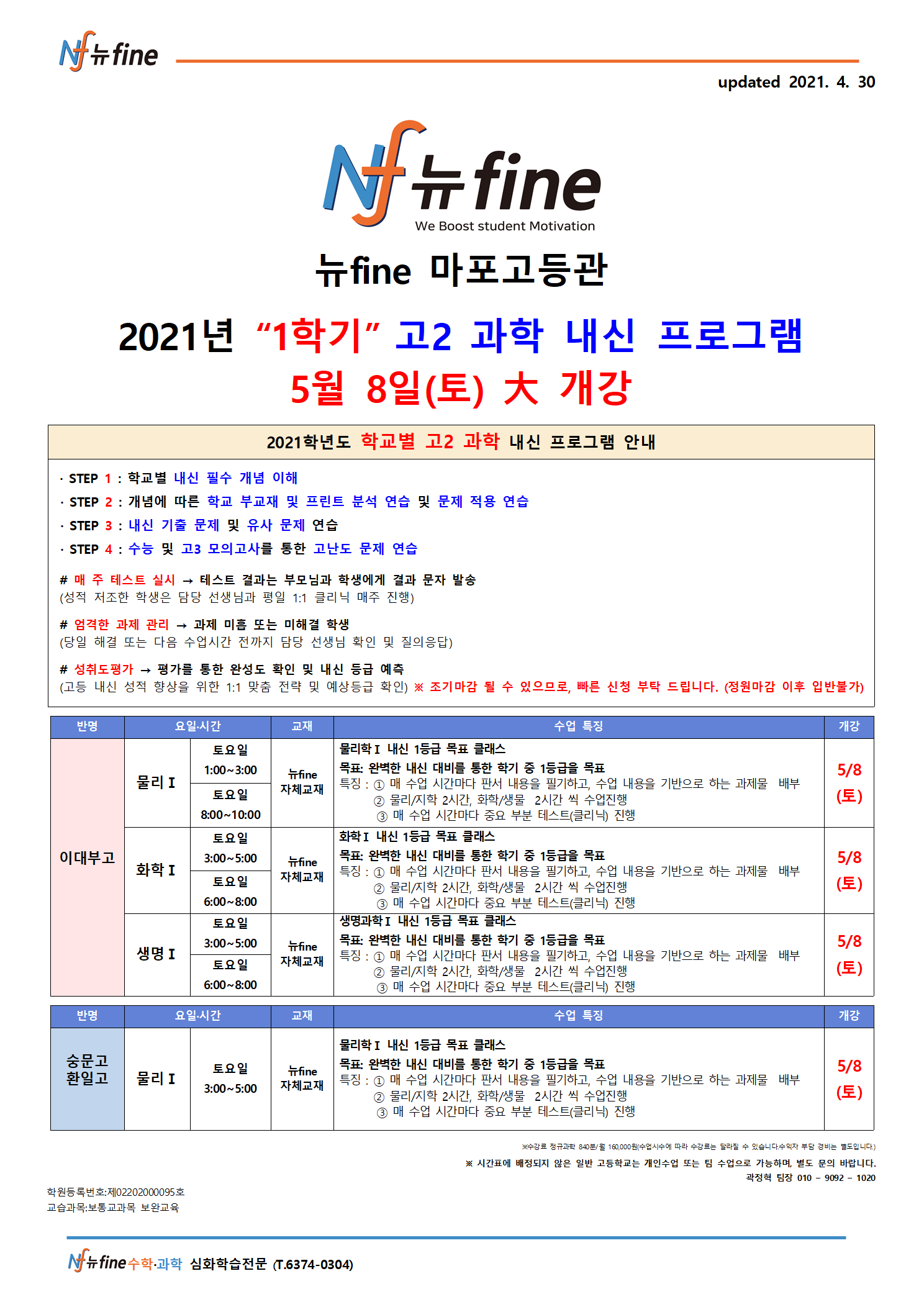 2021년 5월 1학기 마포고등관 고2 과학프로그램