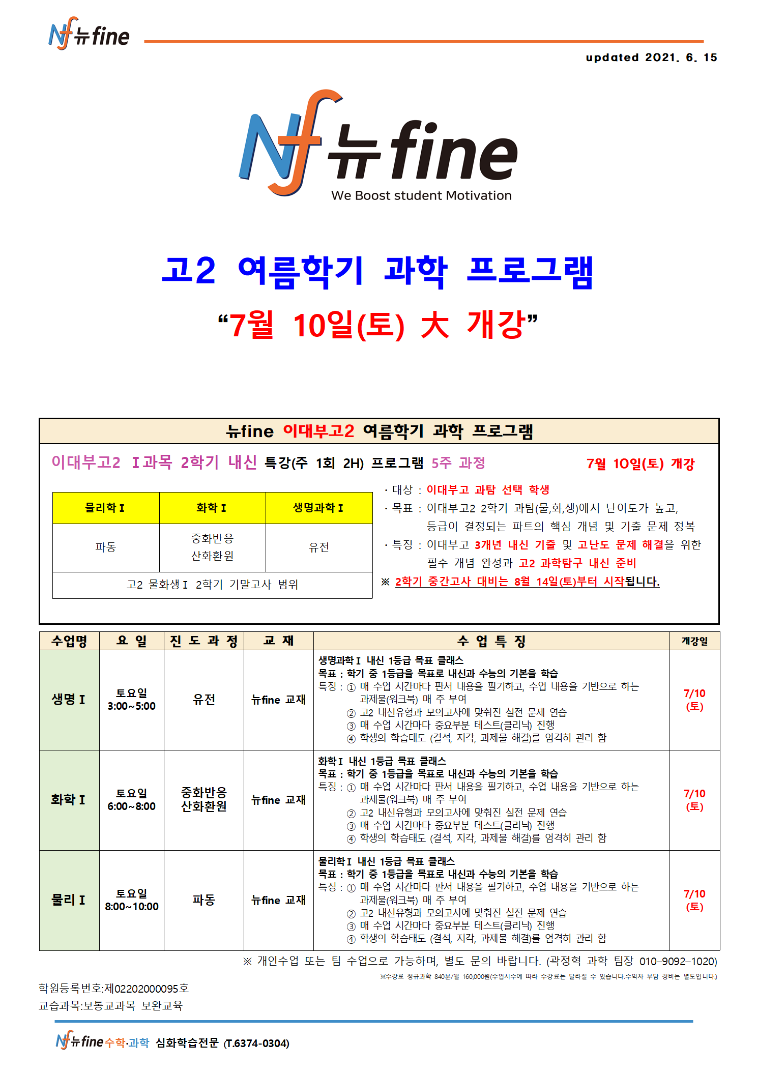 2021년 7월 [여름학기] 마포고등관 과학프로그램