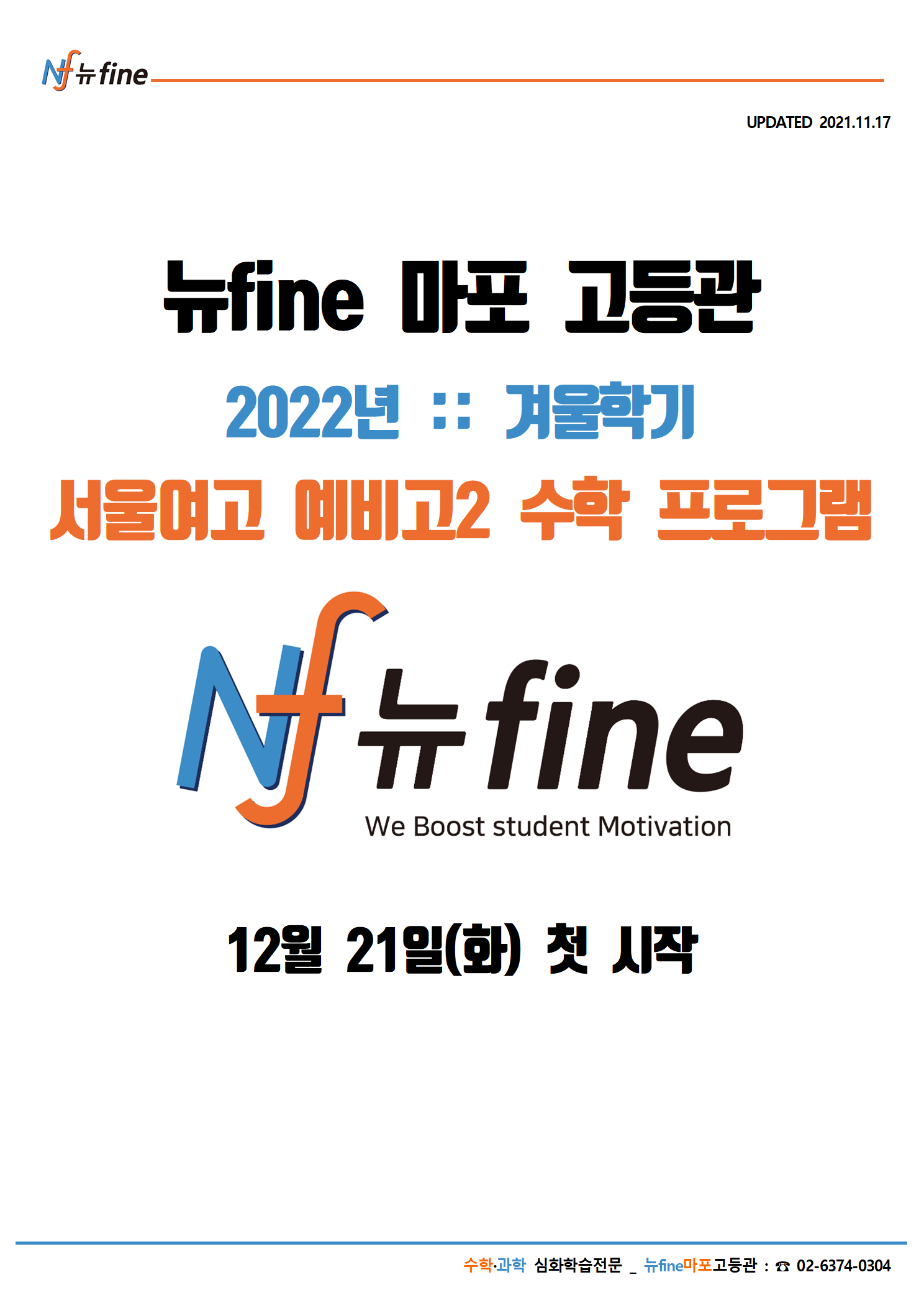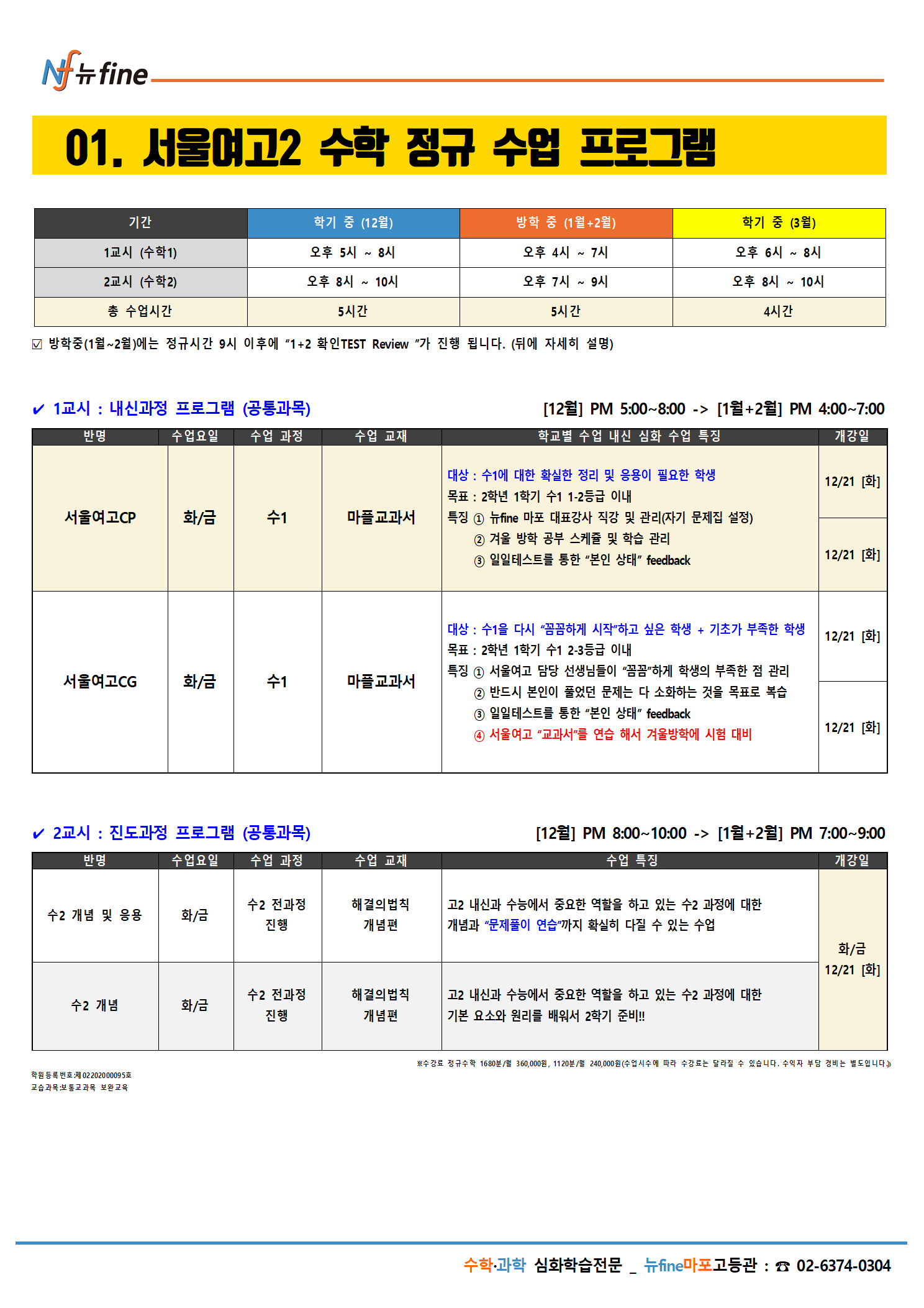 2022년 [겨울방학] 마포고등관 <서울여고> 현 고1 수학프로그램