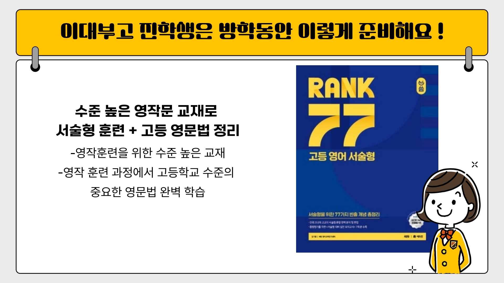 - 2026년 신촌 고등관 "예비 고1(현 중3) 이대부고 영어 시험 대비 전략" 안내