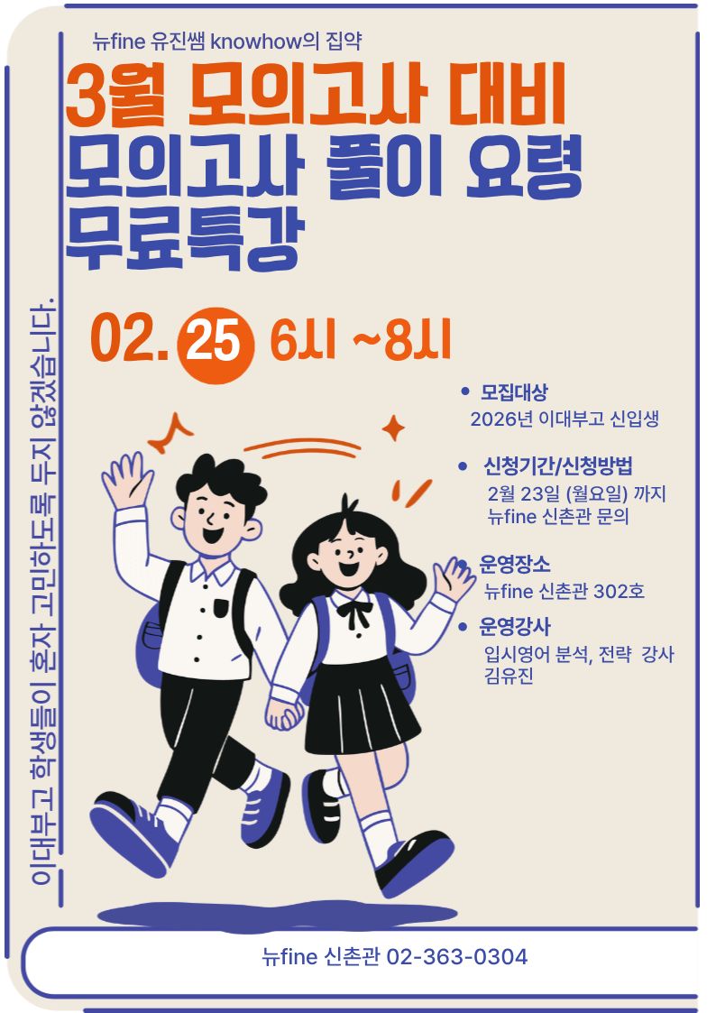 "3월 1학년 영어 모의고사 대비 무료특강 "