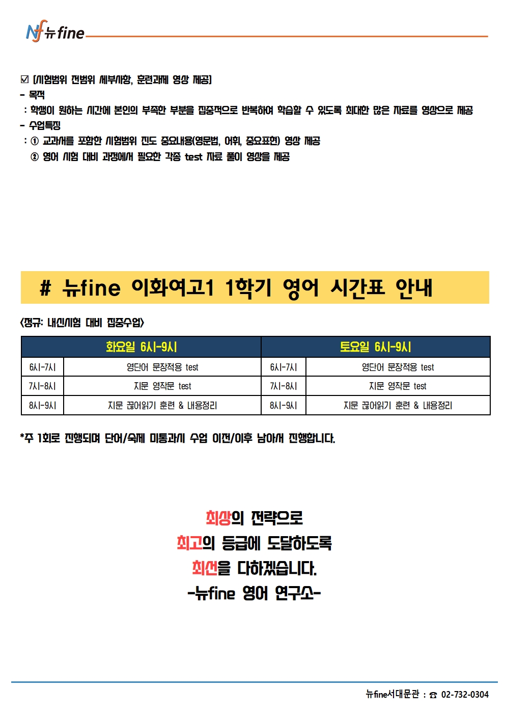 * 수강료 영어 1,320분/월 270,000원 (수업 시수에 따라 수강료는 변동 될 수 있습니다. 수익자 부담 경비는 별도입니다.)