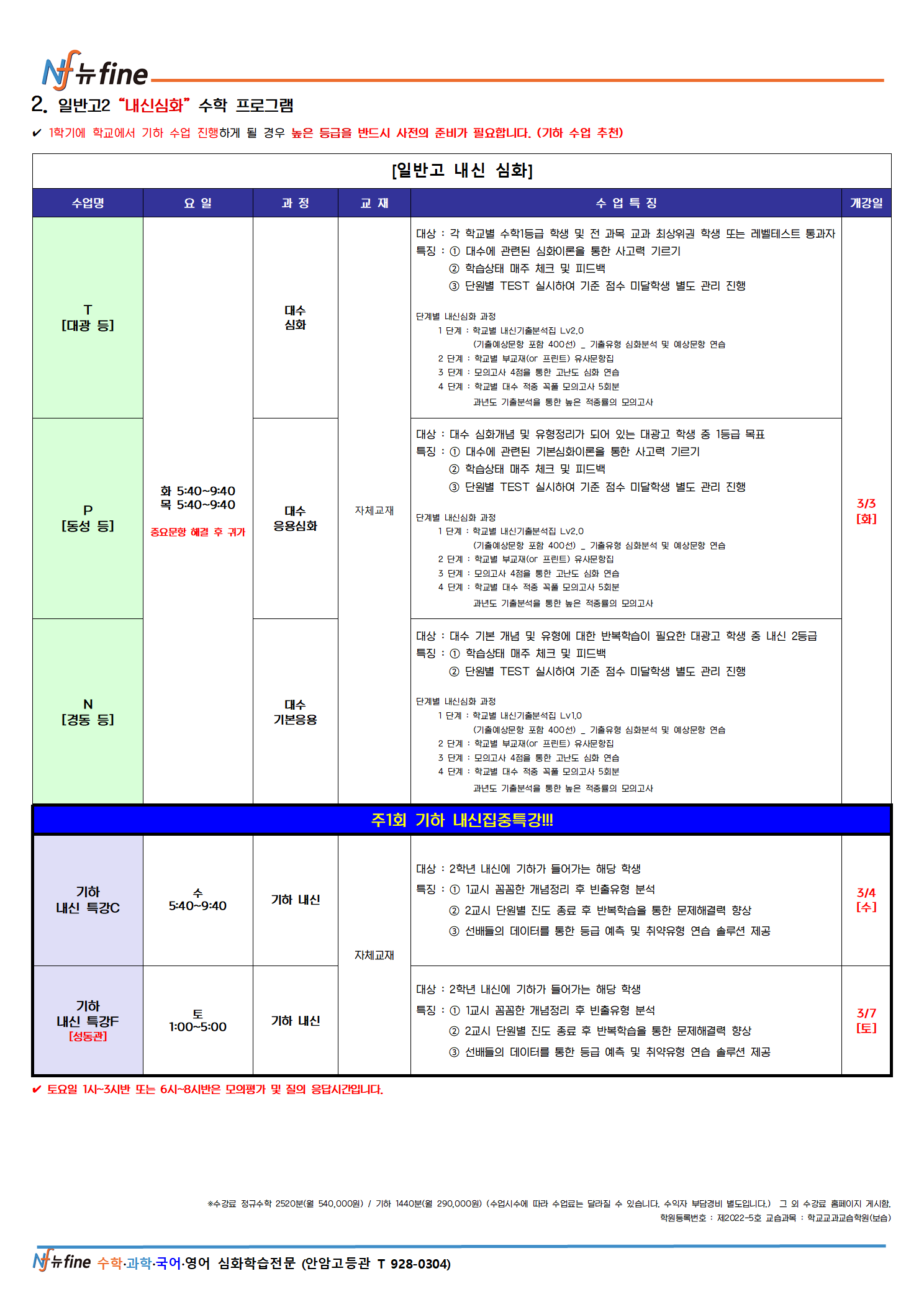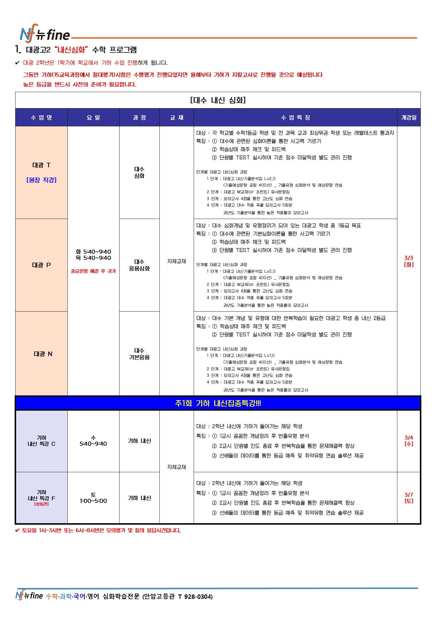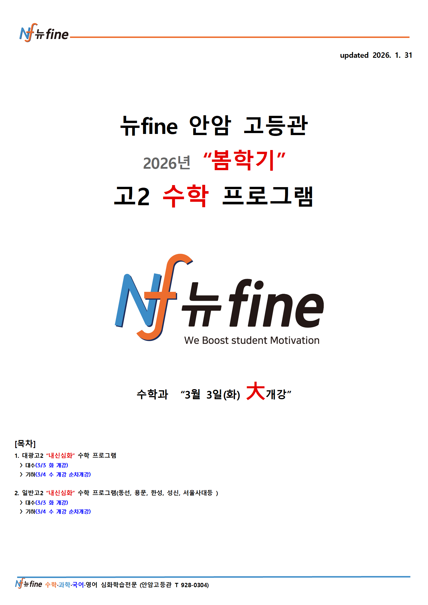 2026년 3월 안암고등관 봄학기 고2 수학 프로그램