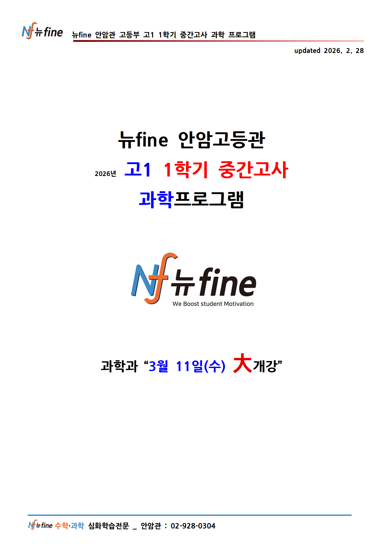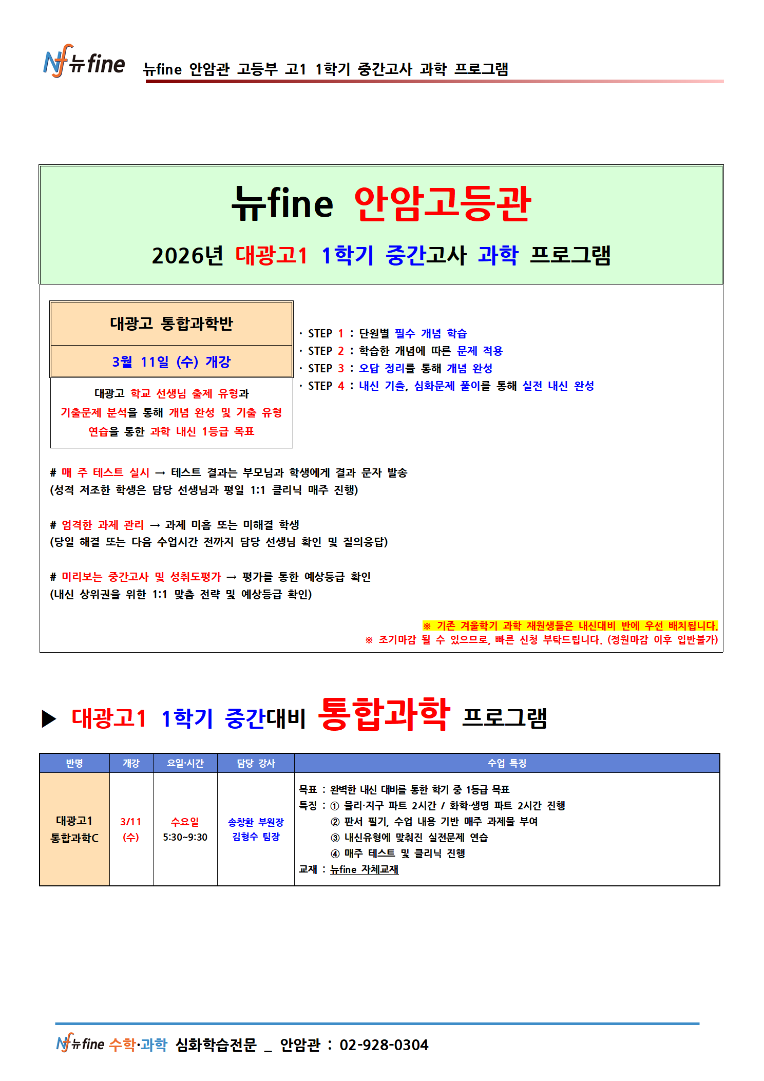 2026년 3월 안암고등관 봄학기 고1 과학 프로그램