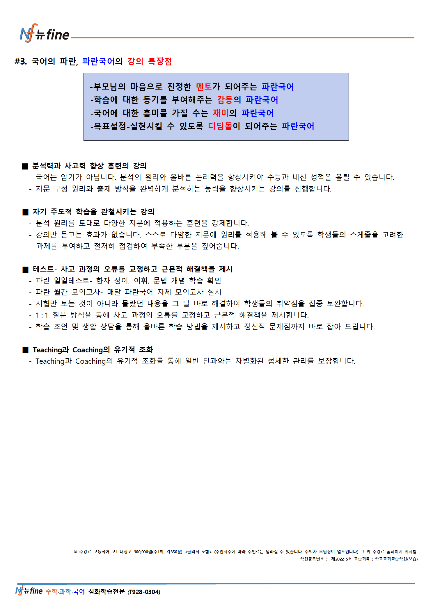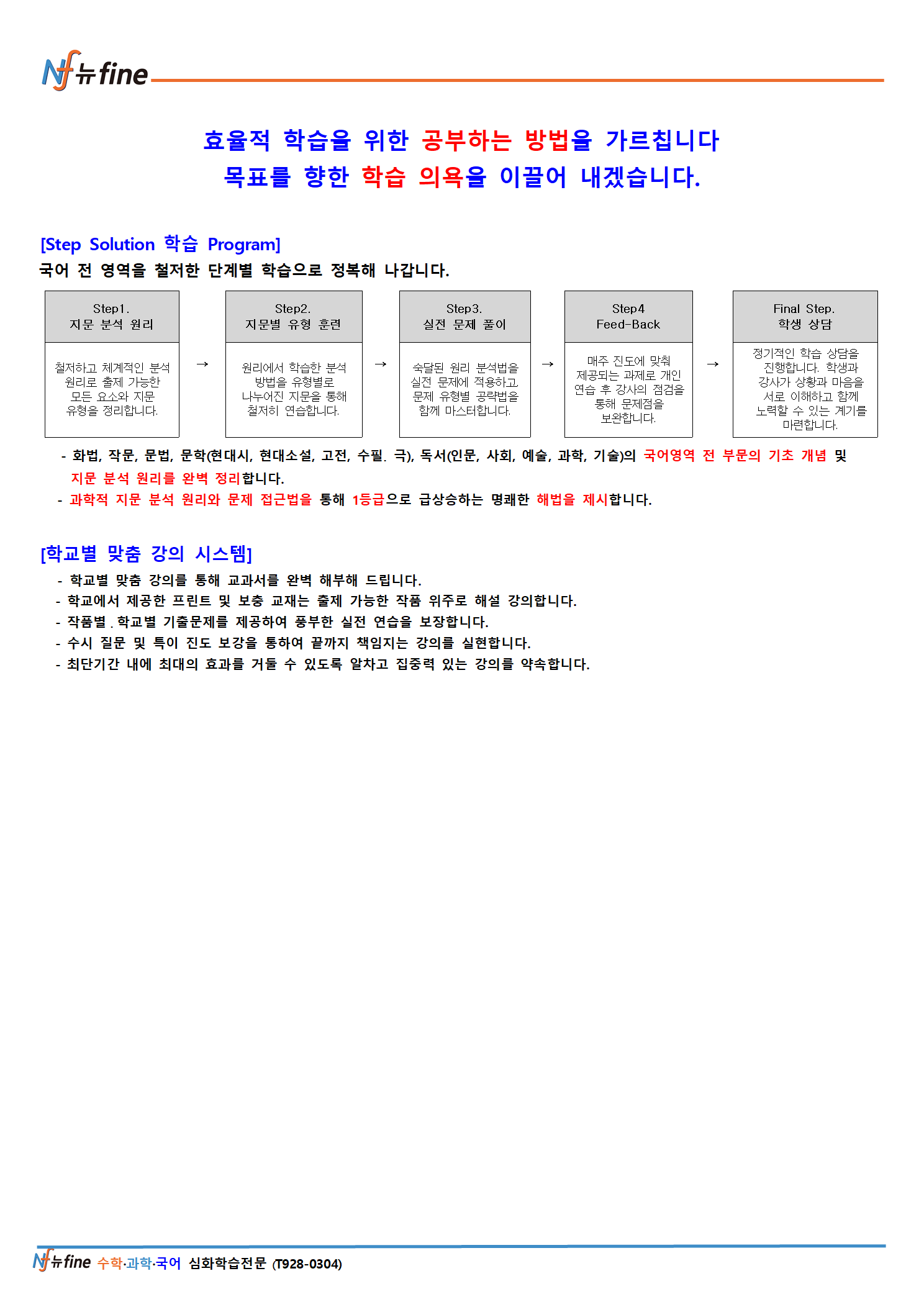 뉴파인학원(이하 ‘학원’)은 개인정보 보호법에 명기된 관련 법률 상의 개인정보처리자가 준수하여야 할 개인정보보호 규정을 준수하며, 관련 법령에 의거하여 이용자의 권익 보호에 최선을 다하고 있습니다. 아래 내용을 충분히 숙지하신 후 본인이 직접 동의란에 서명해 주시기 바랍니다.