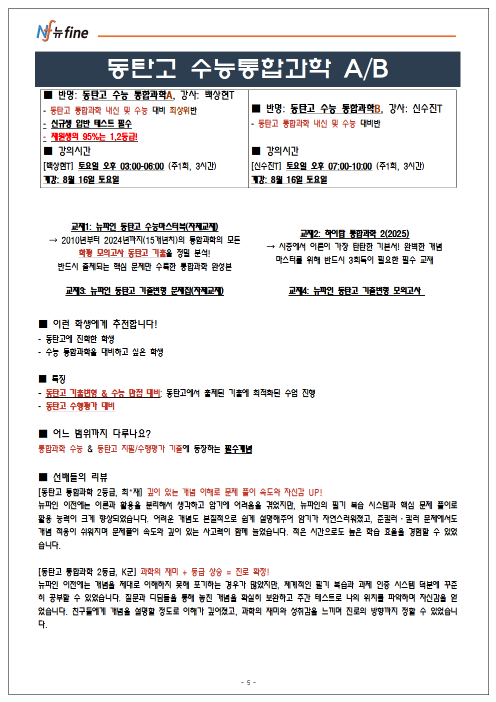 2025년 뉴fine동탄능동 고등특별관 8월