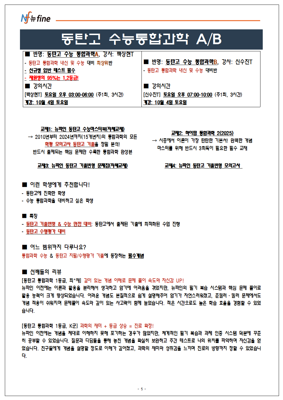 2025년 뉴fine동탄능동 고등특별관 10월