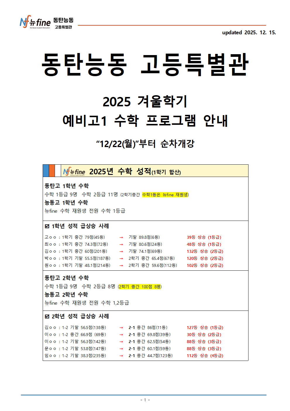 2025년 뉴fine동탄능동 고등특별관 12월