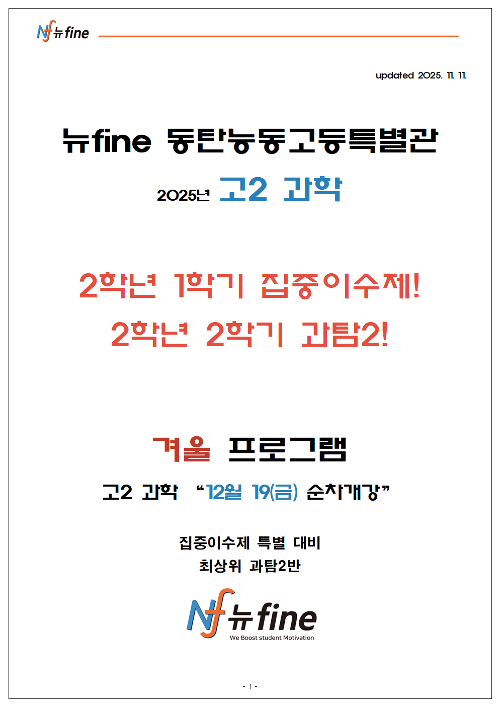 2025년 뉴fine동탄능동 고등특별관 12월