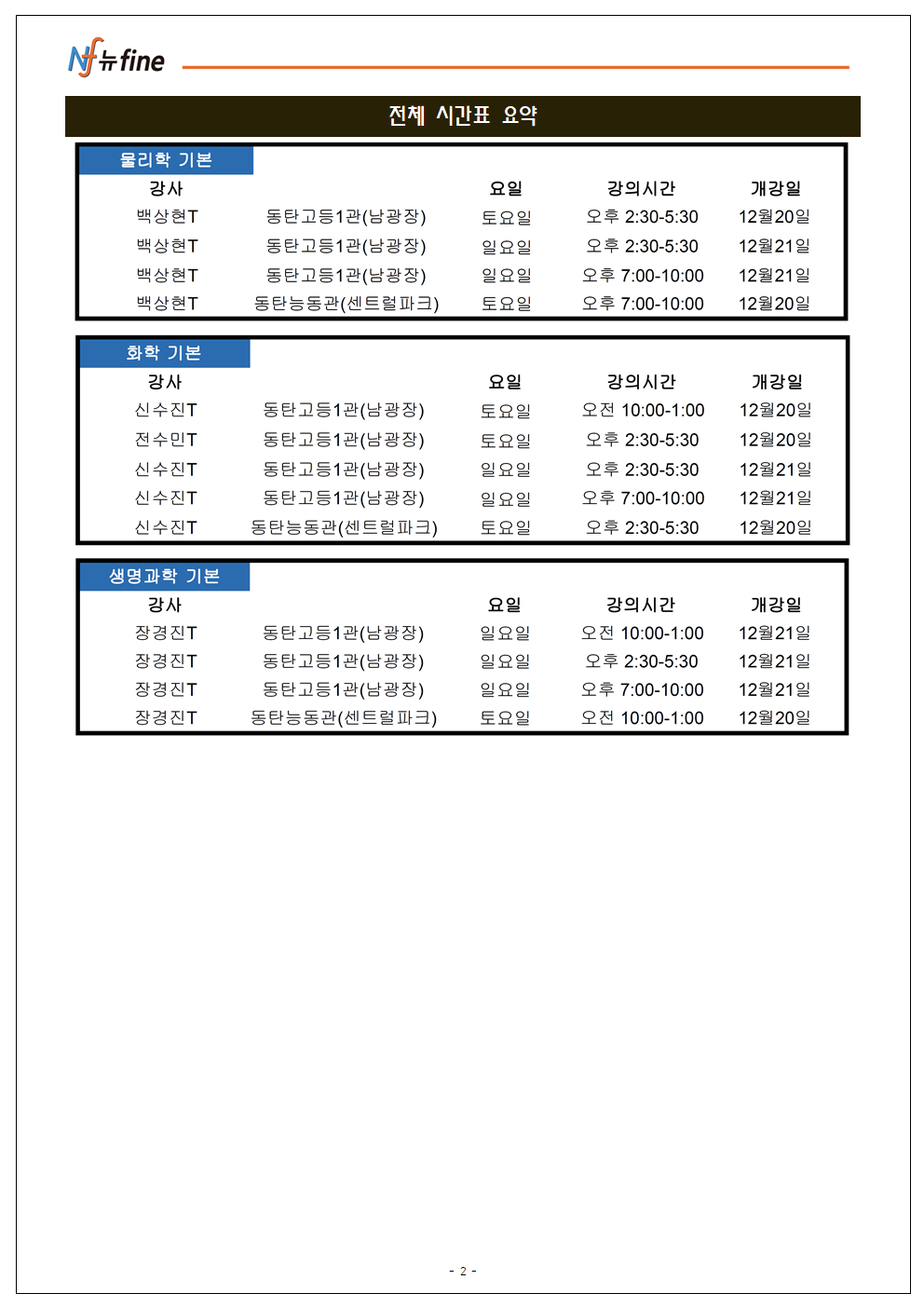 뉴파인동탄능동고등특별관학원