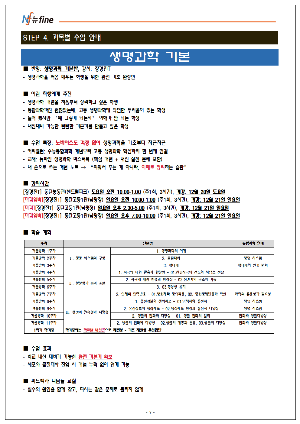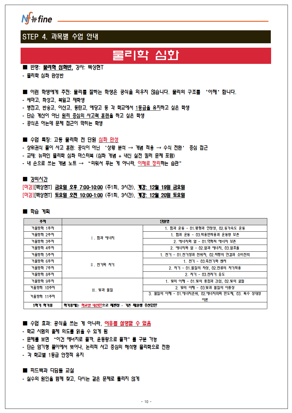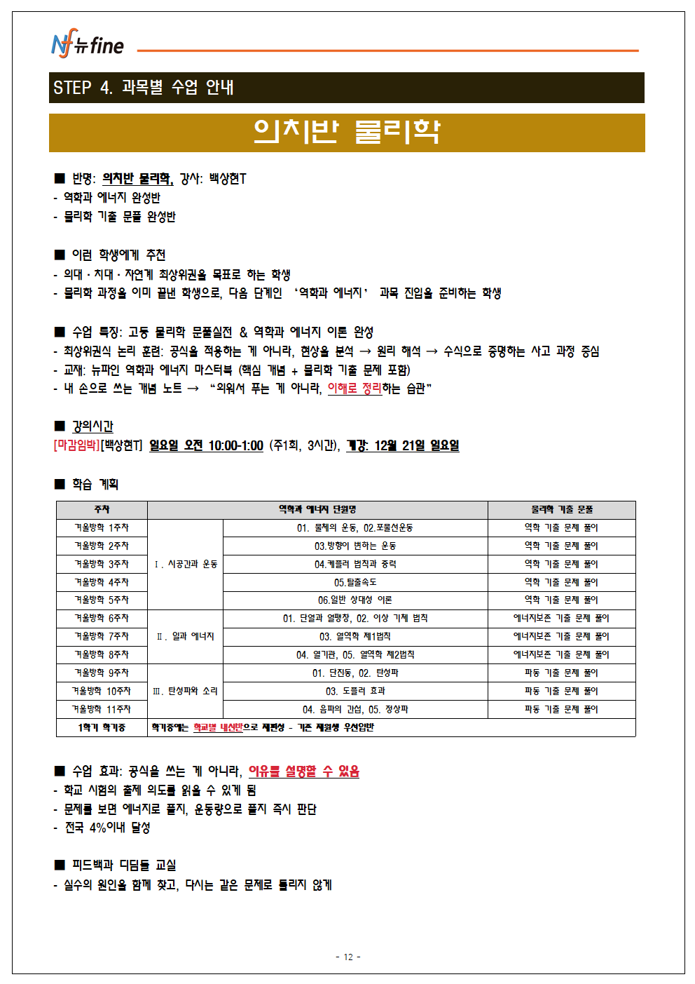 프로그램 12/20(토) 개강 (현고1)