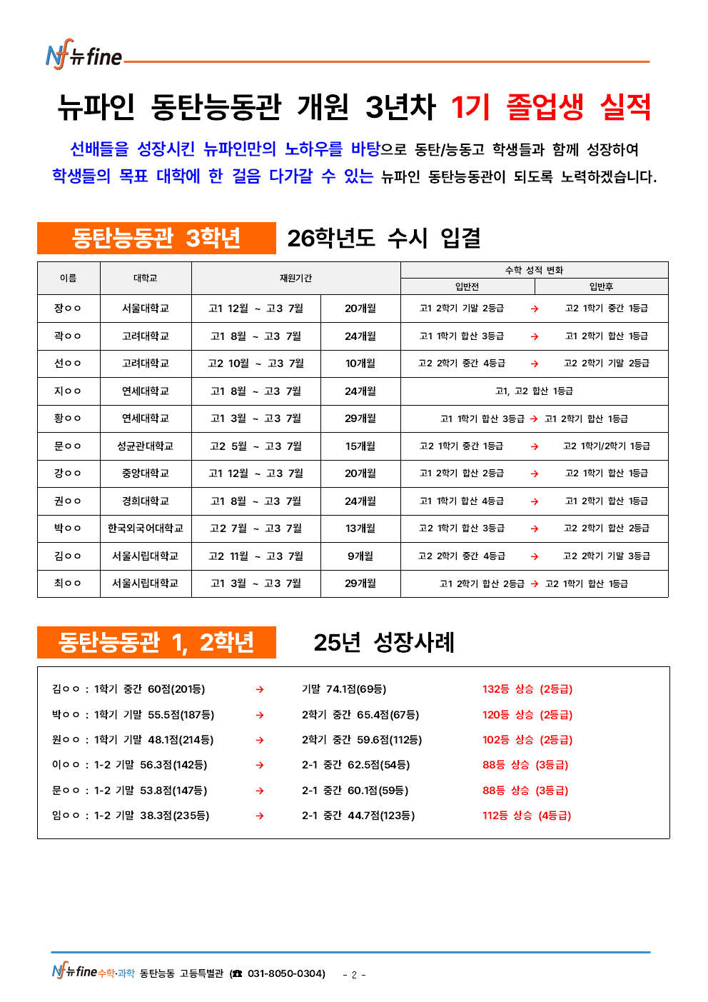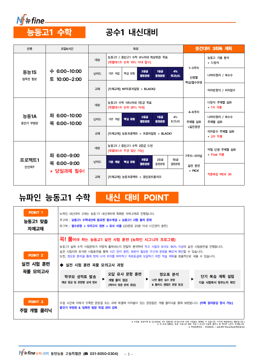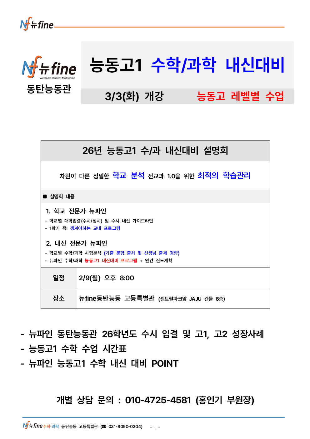 2026년 뉴fine동탄능동 고등특별관 3월 봄학기
