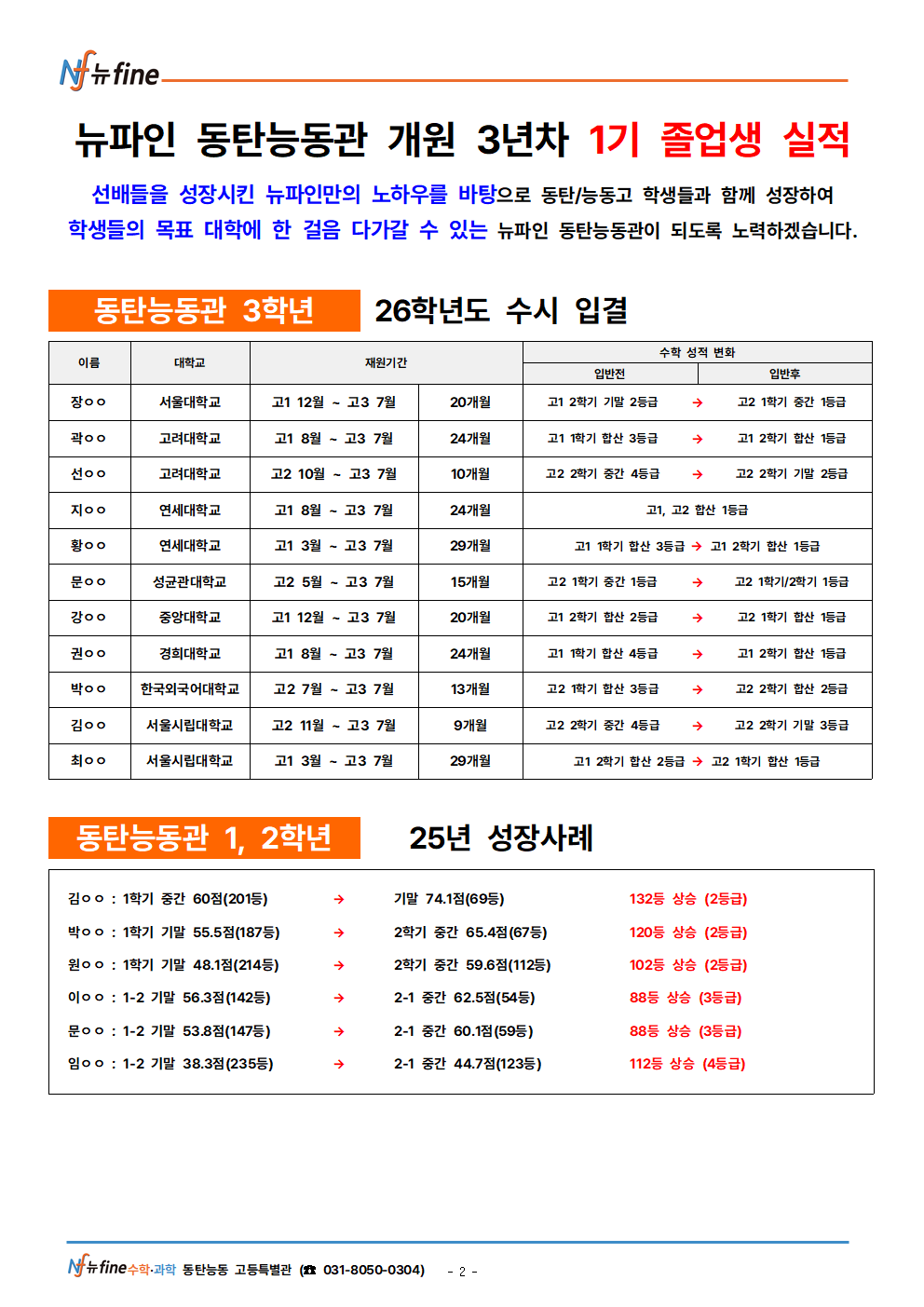 2026년 뉴fine동탄능동 고등특별관 3월 봄학기