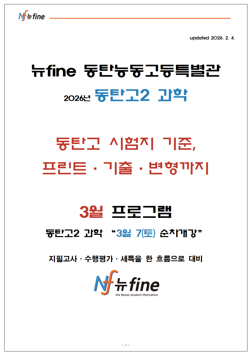 2026년 뉴fine동탄능동 고등특별관 3월 봄학기