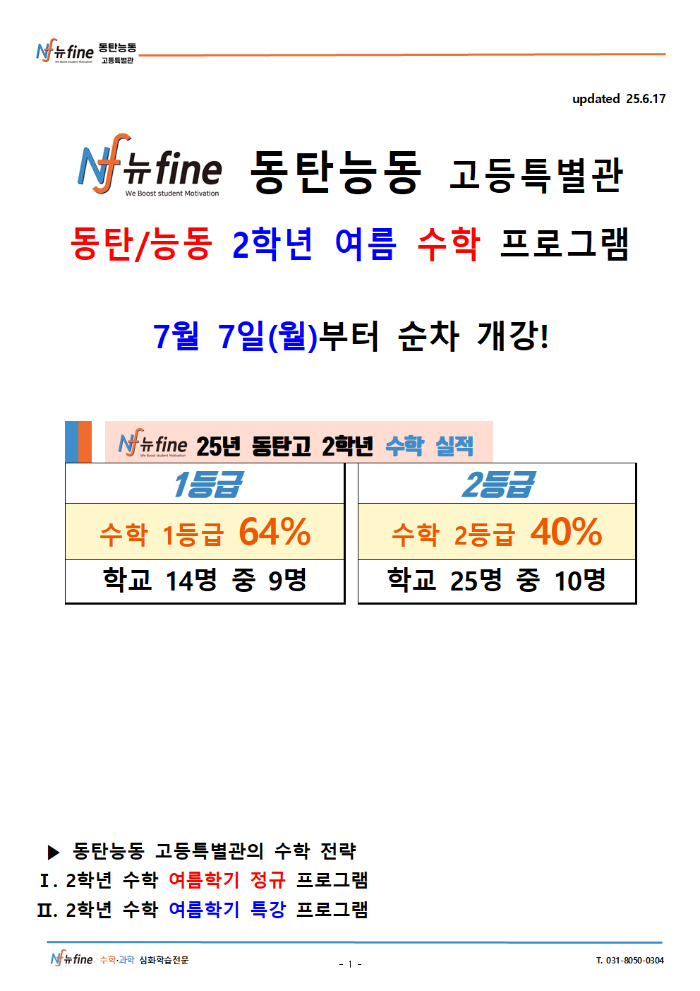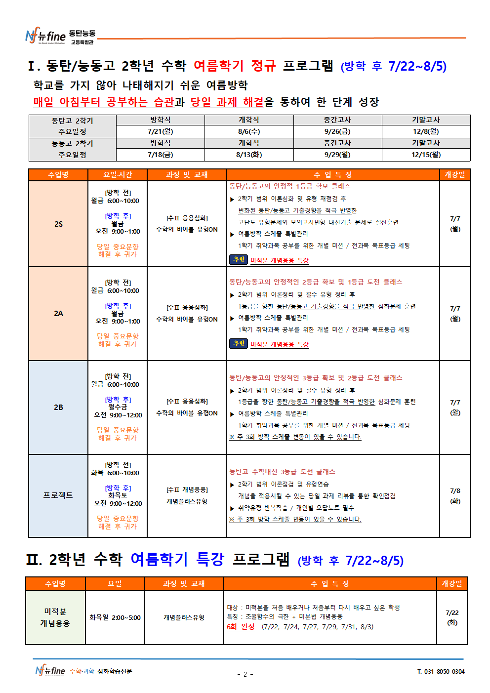 2025년 뉴fine동탄능동 고등특별관 7월 고2 동탄고/능동고 여름학기 수학 프로그램 7/7(월) 개강