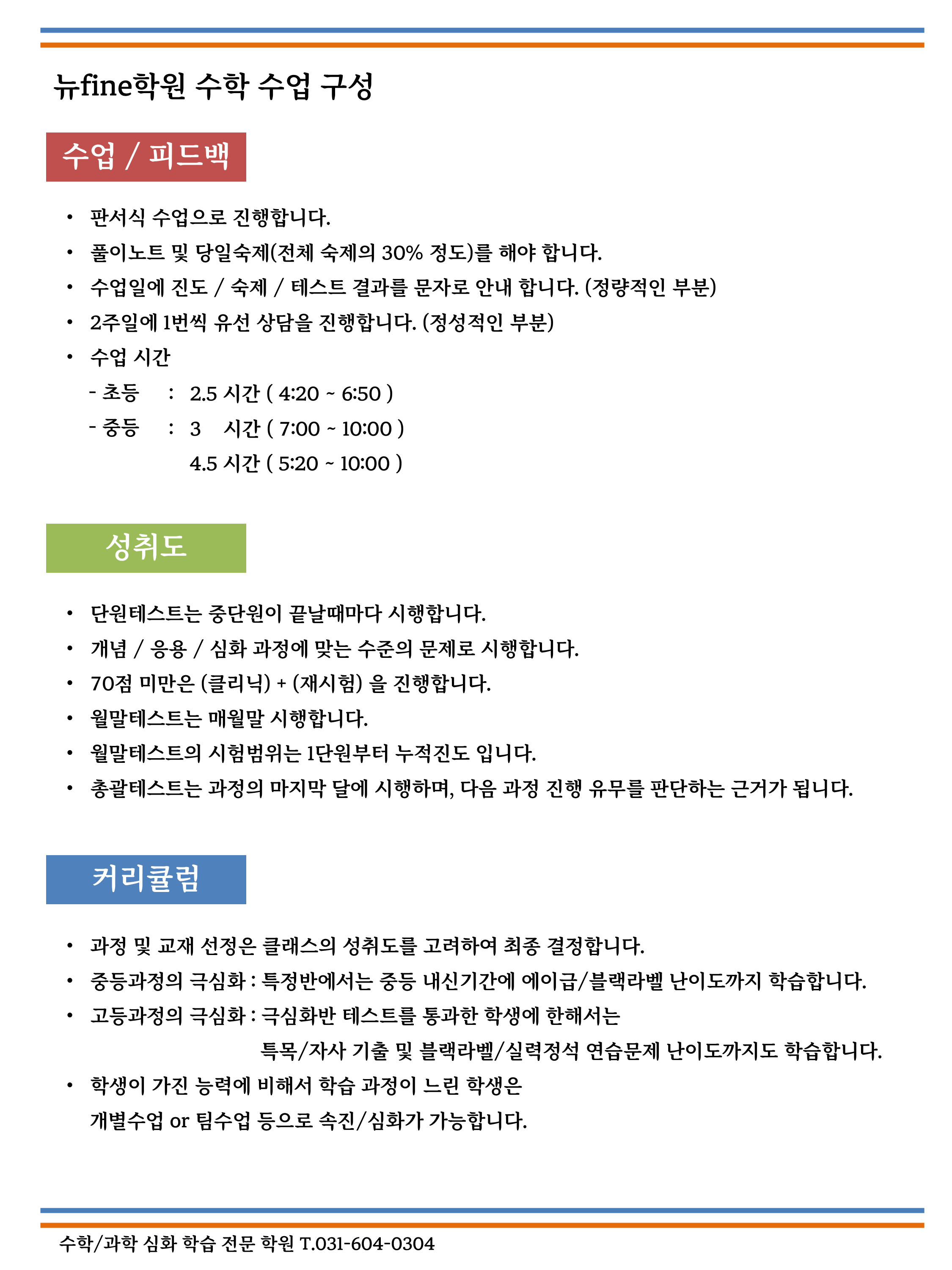 뉴파인학원(이하 ‘학원’)은 개인정보 보호법에 명기된 관련 법률 상의 개인정보처리자가 준수하여야 할 개인정보보호 규정을 준수하며, 관련 법령에 의거하여 이용자의 권익 보호에 최선을 다하고 있습니다. 아래 내용을 충분히 숙지하신 후 본인이 직접 동의란에 서명해 주시기 바랍니다.