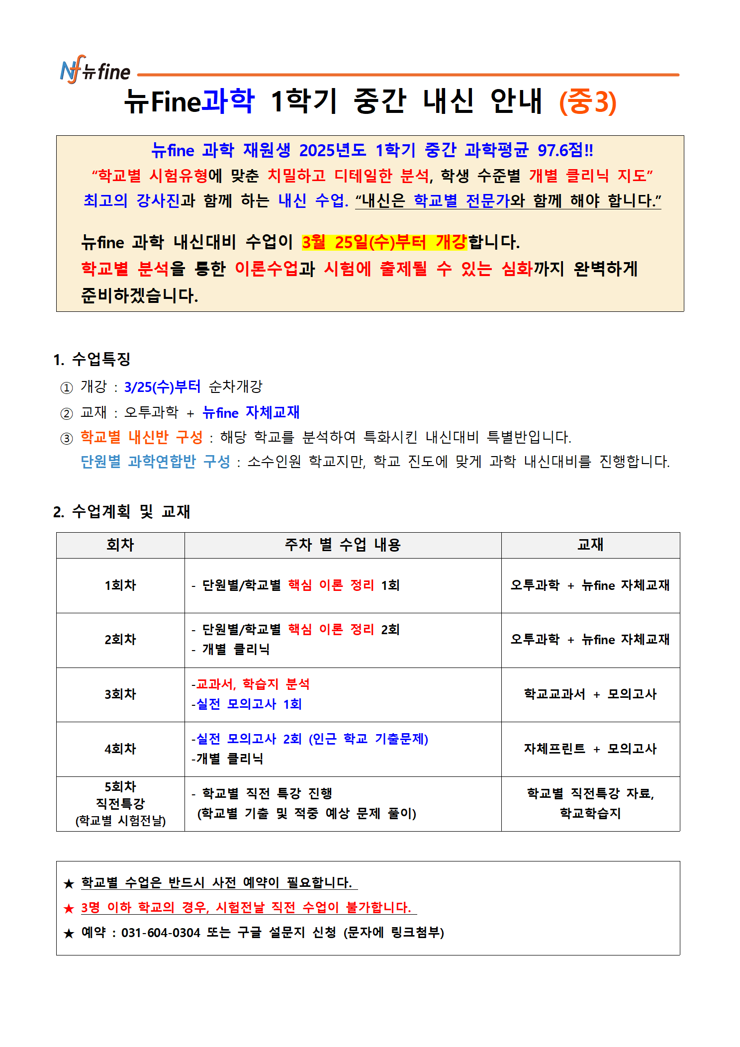 과학 내신특강 프로그램