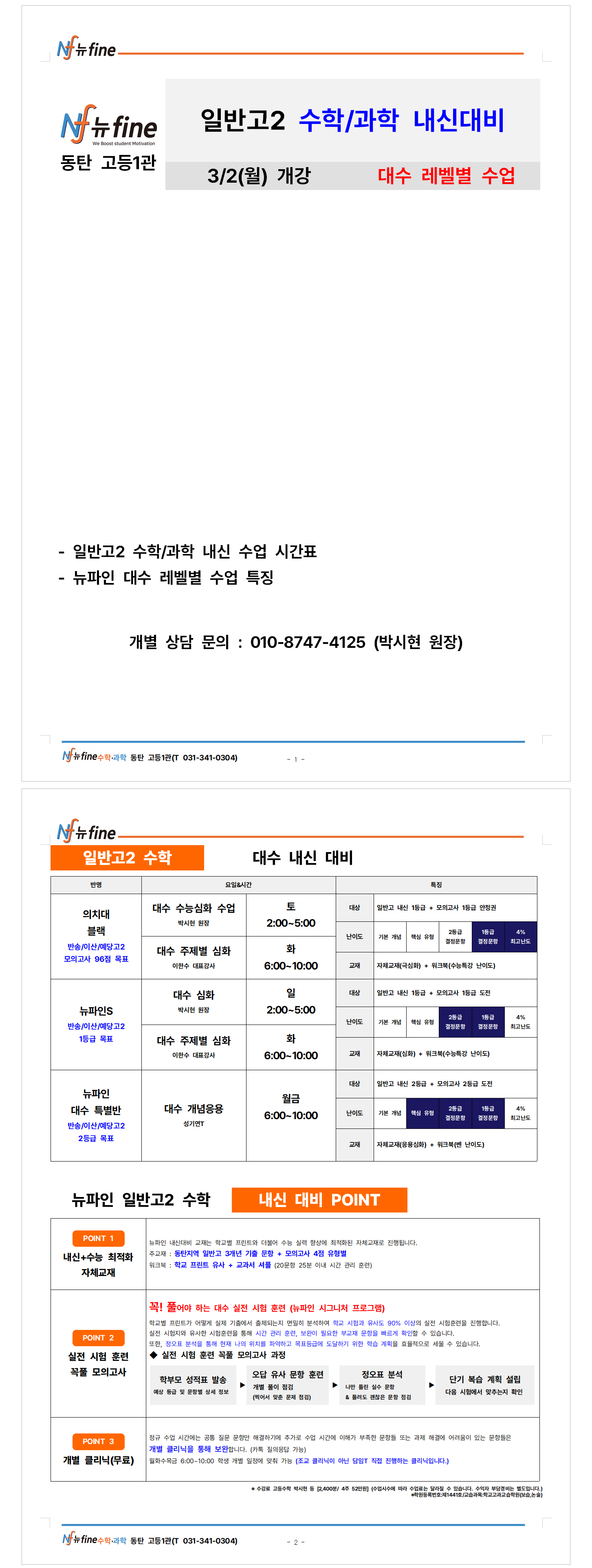 2026년 뉴fine동탄고등1관 3월 봄학기