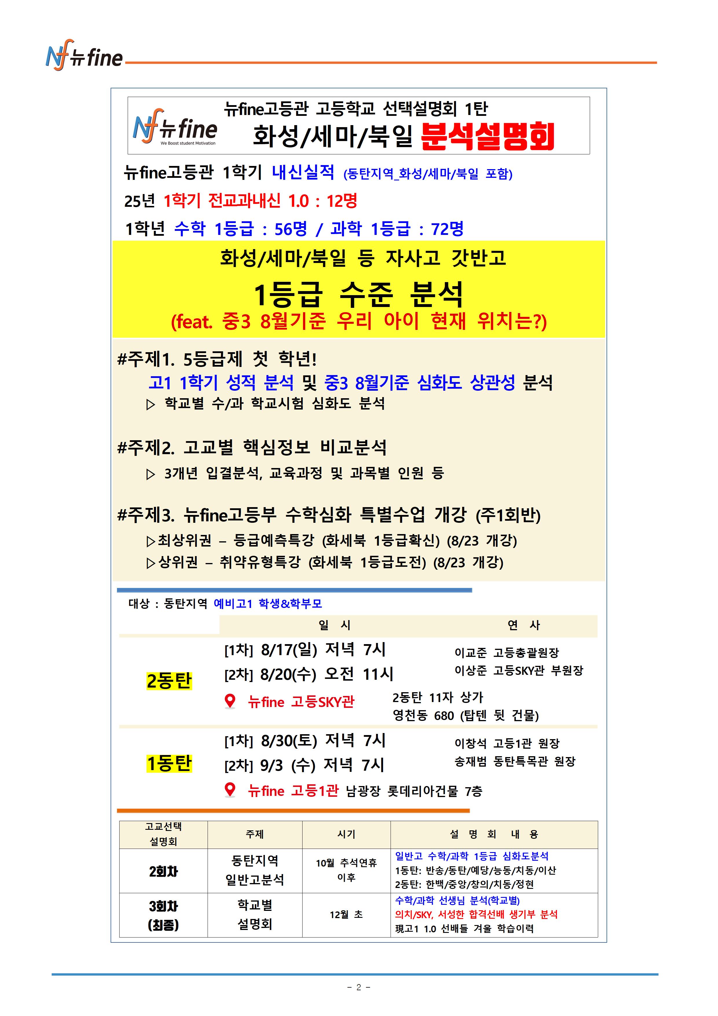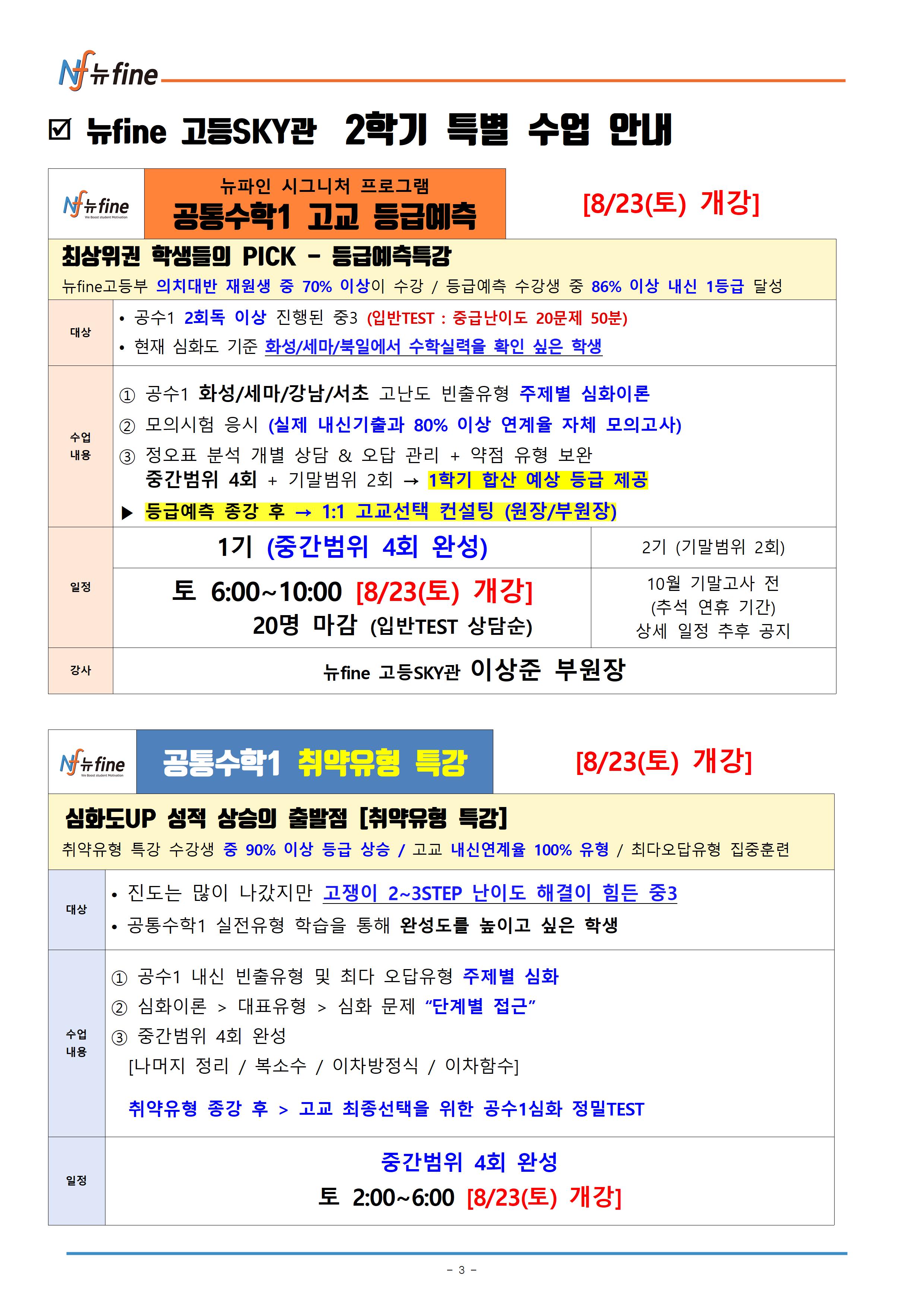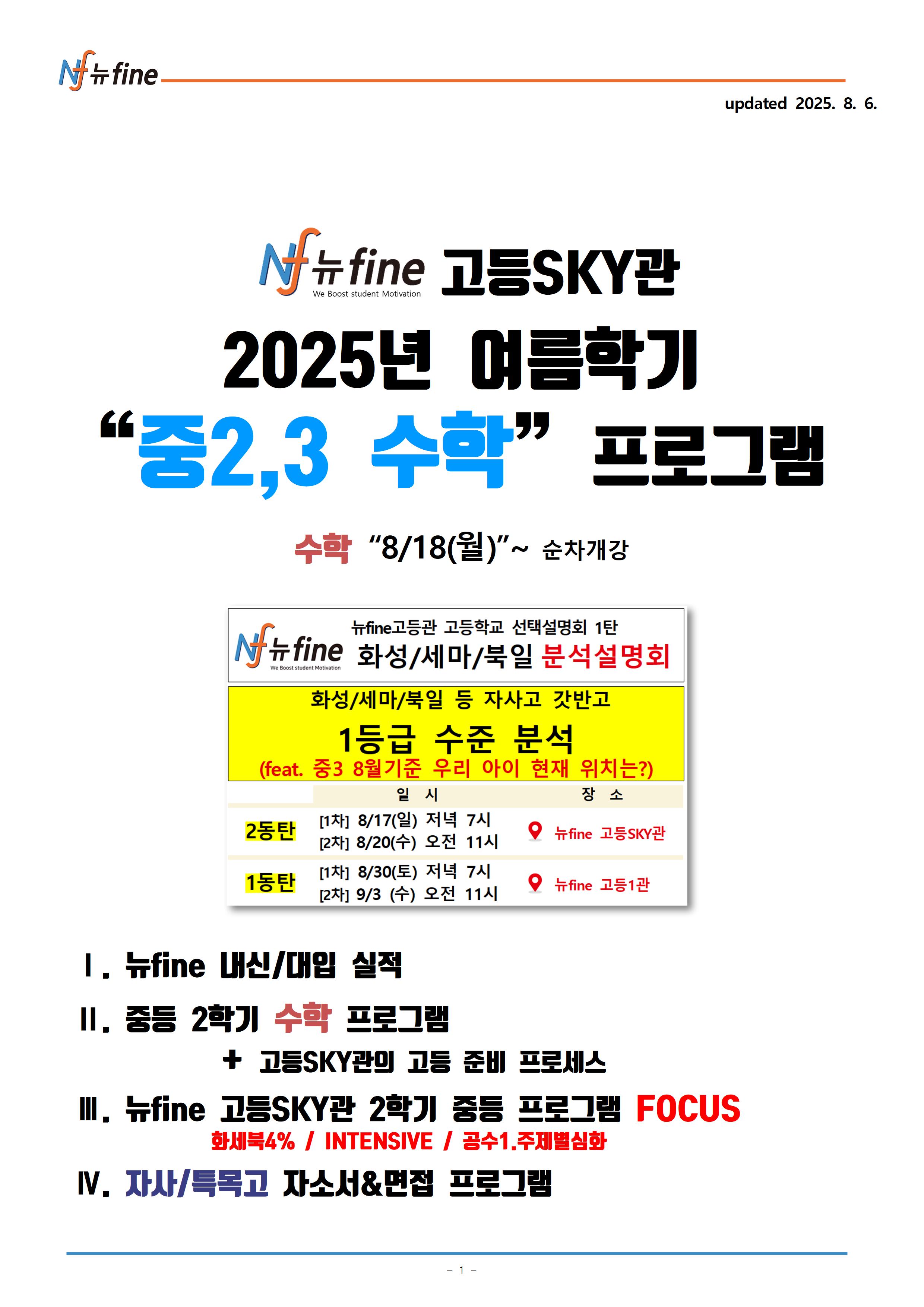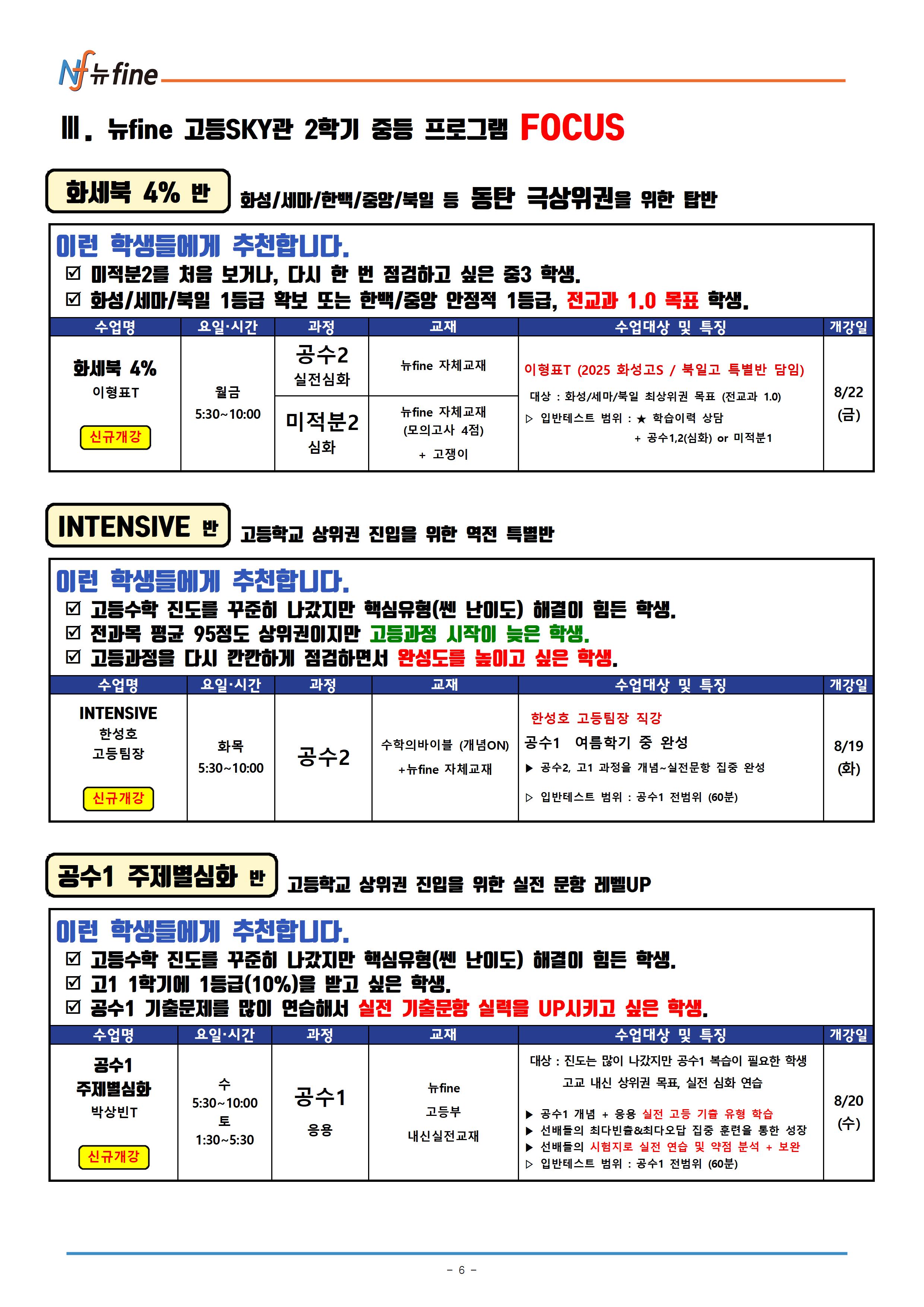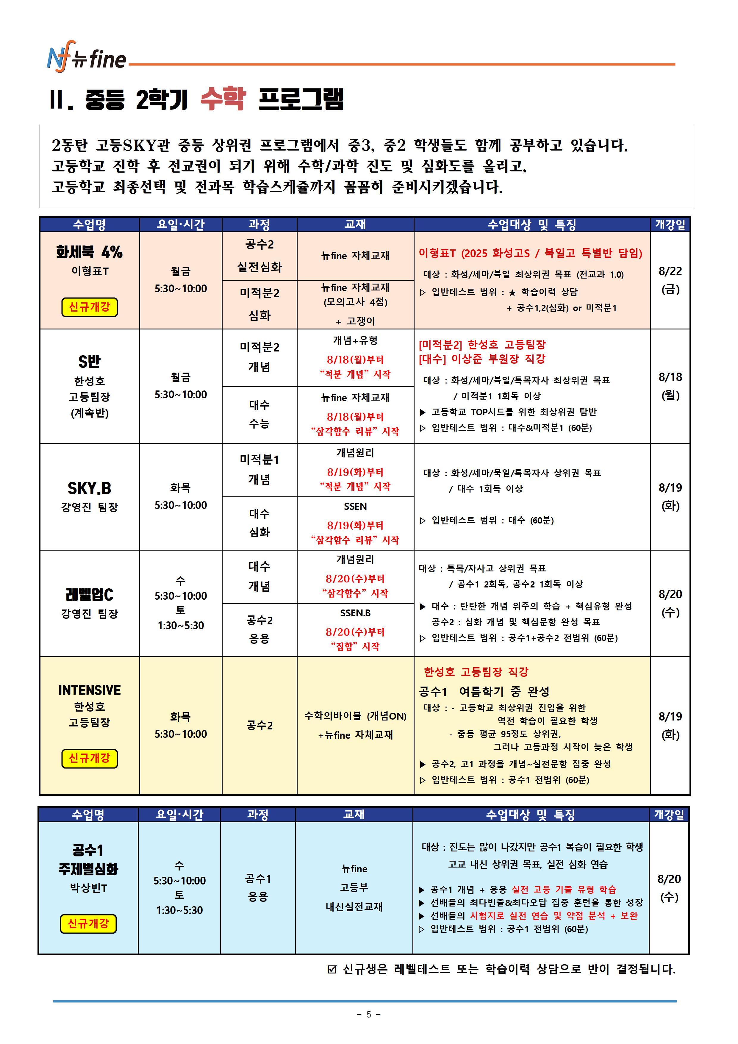 2025년 뉴fine 고등SKY관 중등 수학 2학기 수학 , 자사/특목 입시 프로그램 (8/18(월) 순차개강)